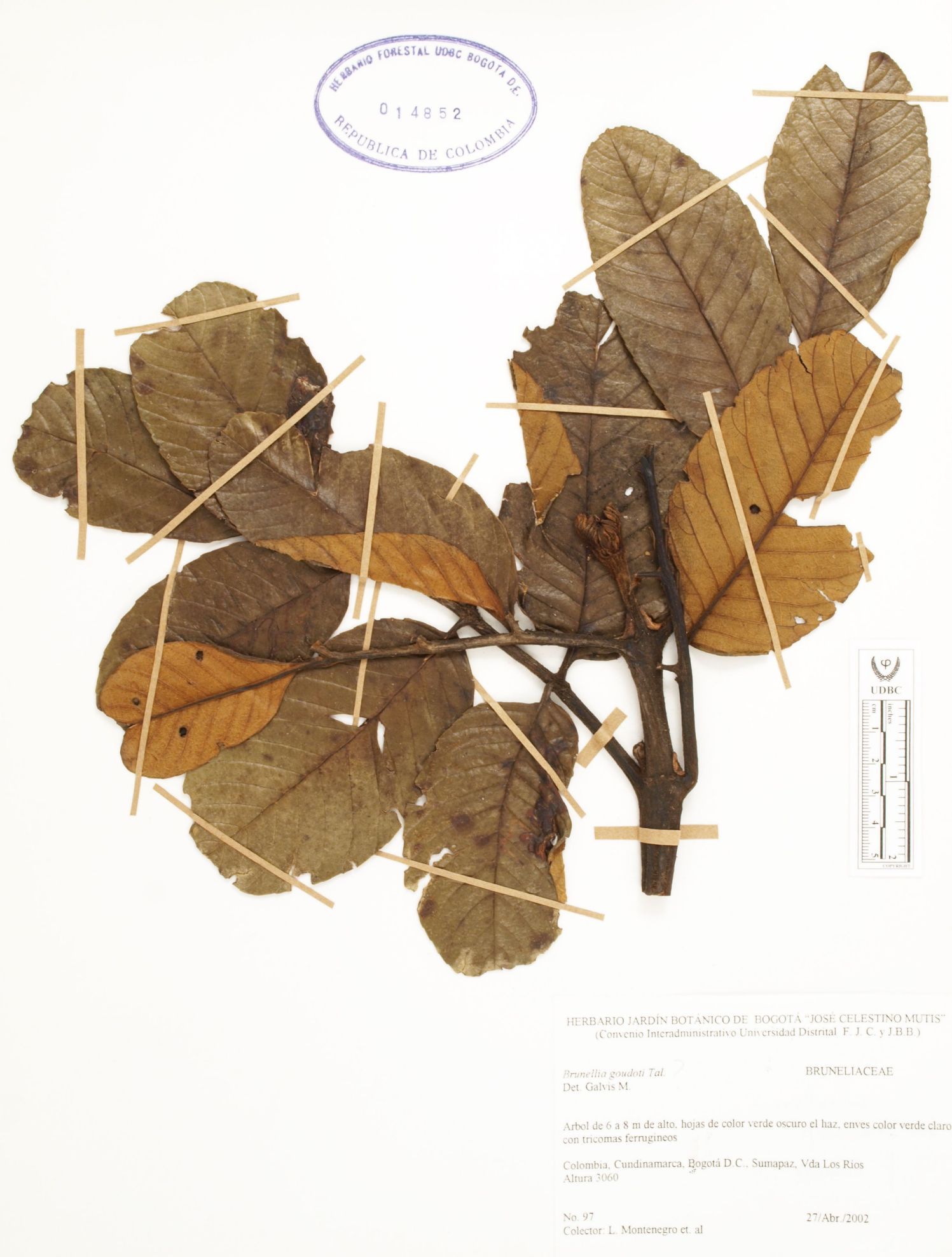 Fotografía del ejemplar Montenegro, L. 97, determinado como Brunellia goudotii