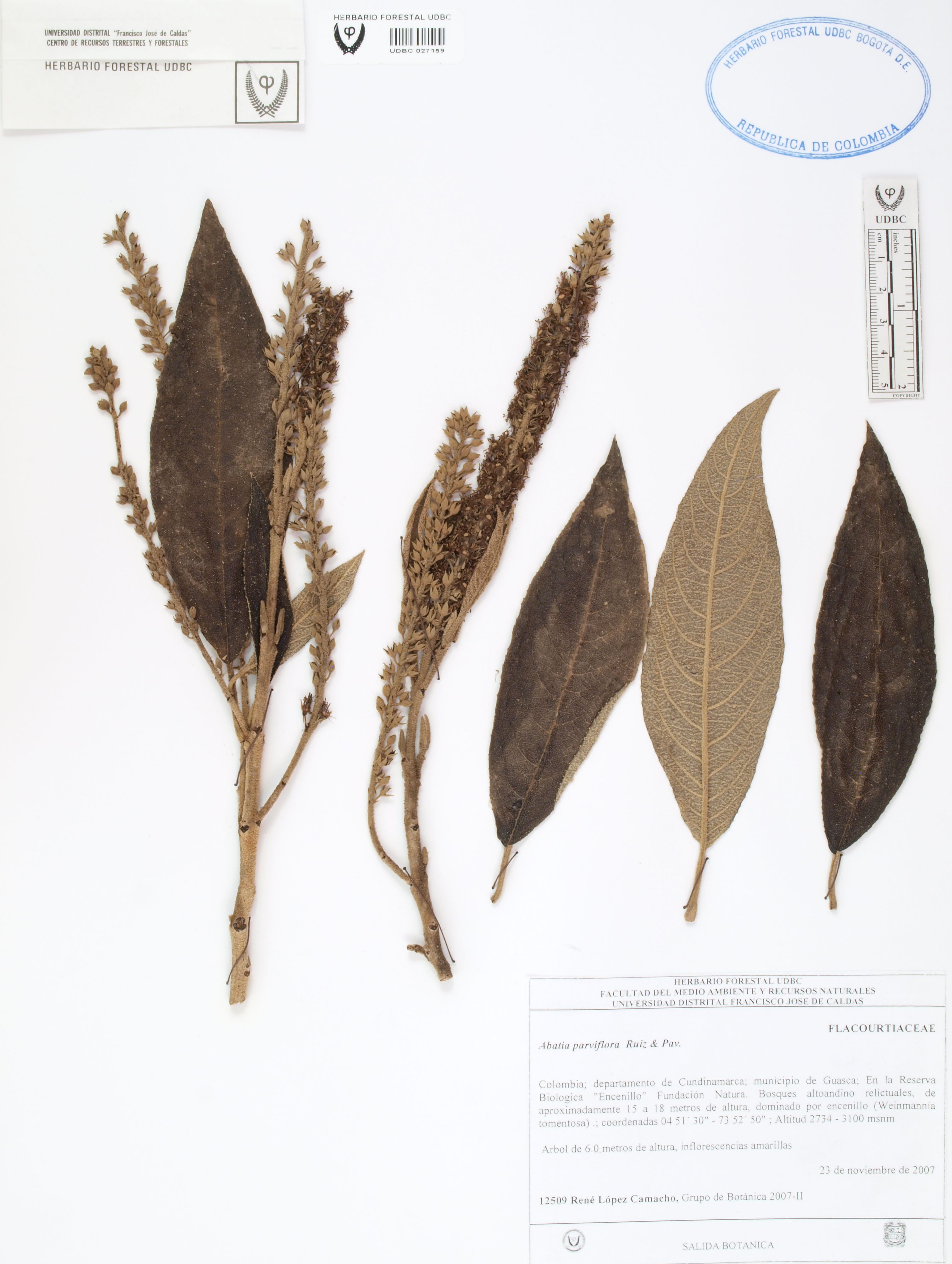 Fotografía del ejemplar López, R. 12509, determinado como Abatia parviflora