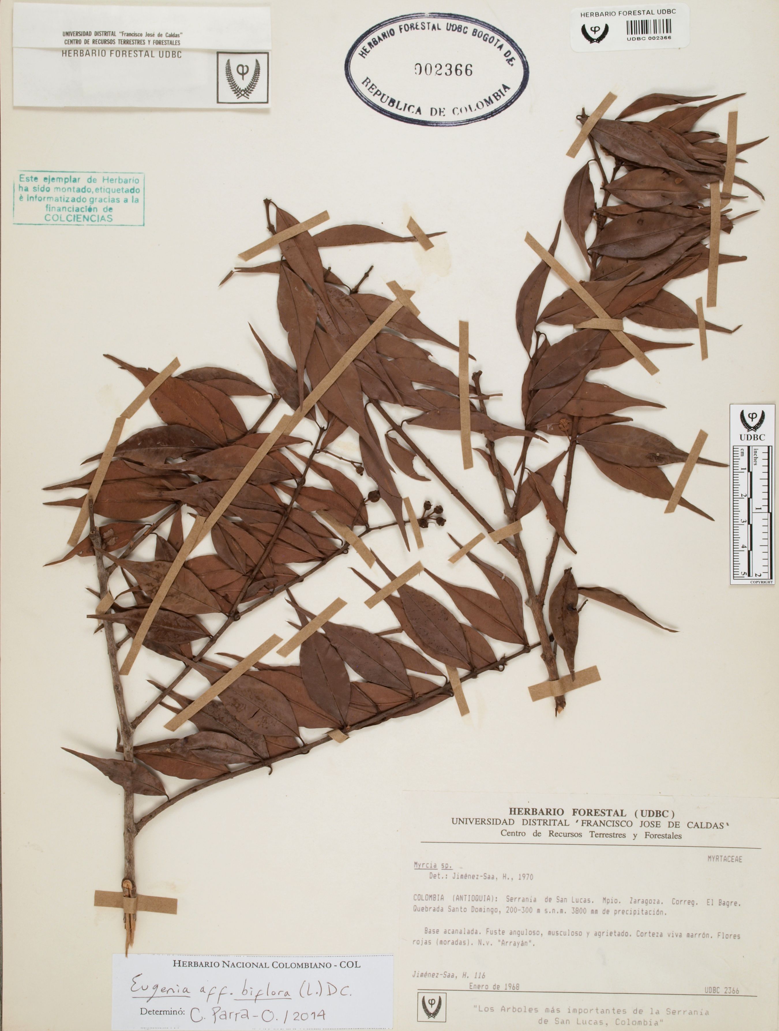 | dc.description | Fotografía del ejemplar Jiménez-Saa, H. 116, determinado como Eugenia biflora en el año 2014 | |