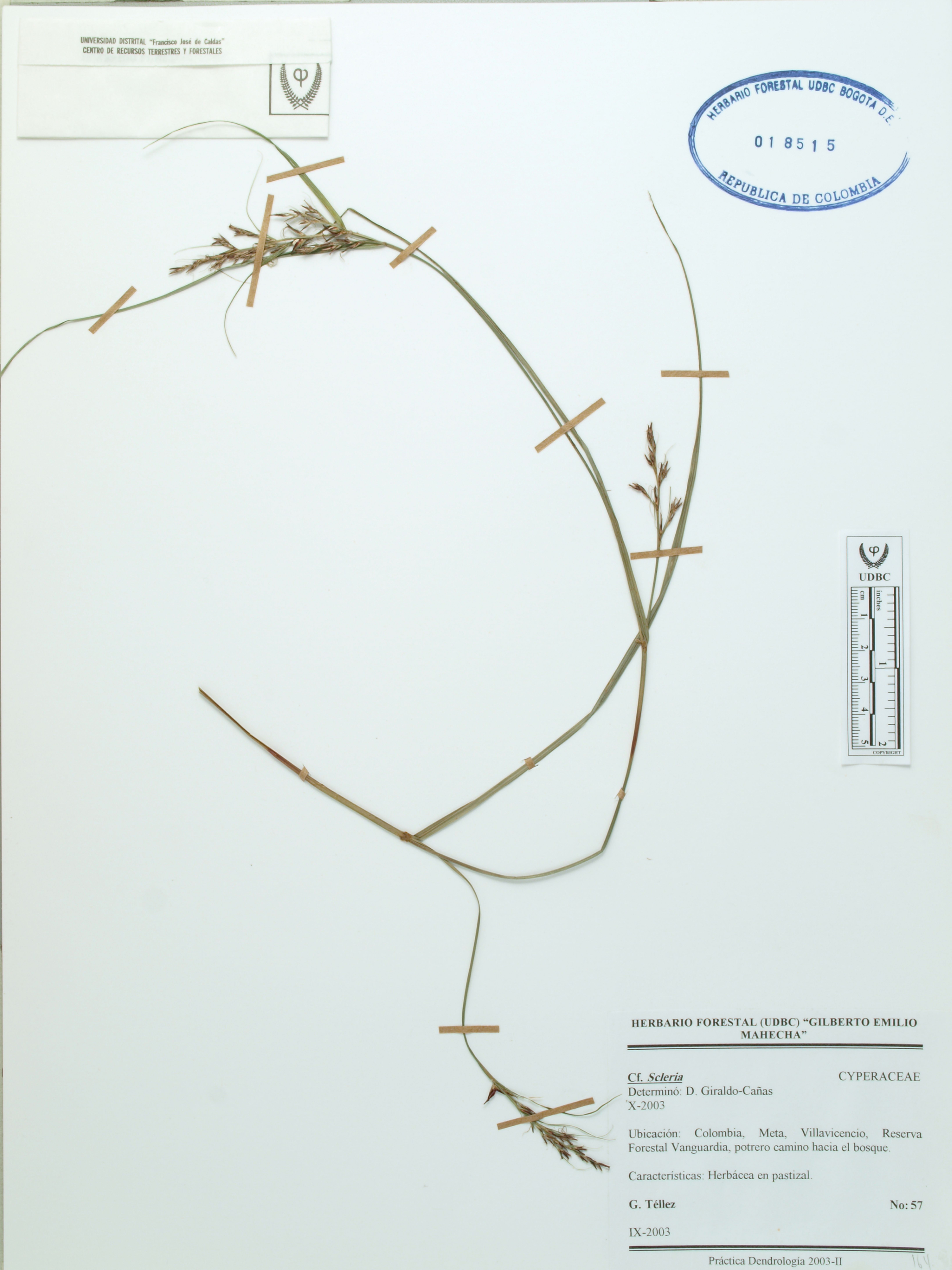 Fotografía del ejemplar Téllez, G. 57, determinado como Scleria secans en el año 2011