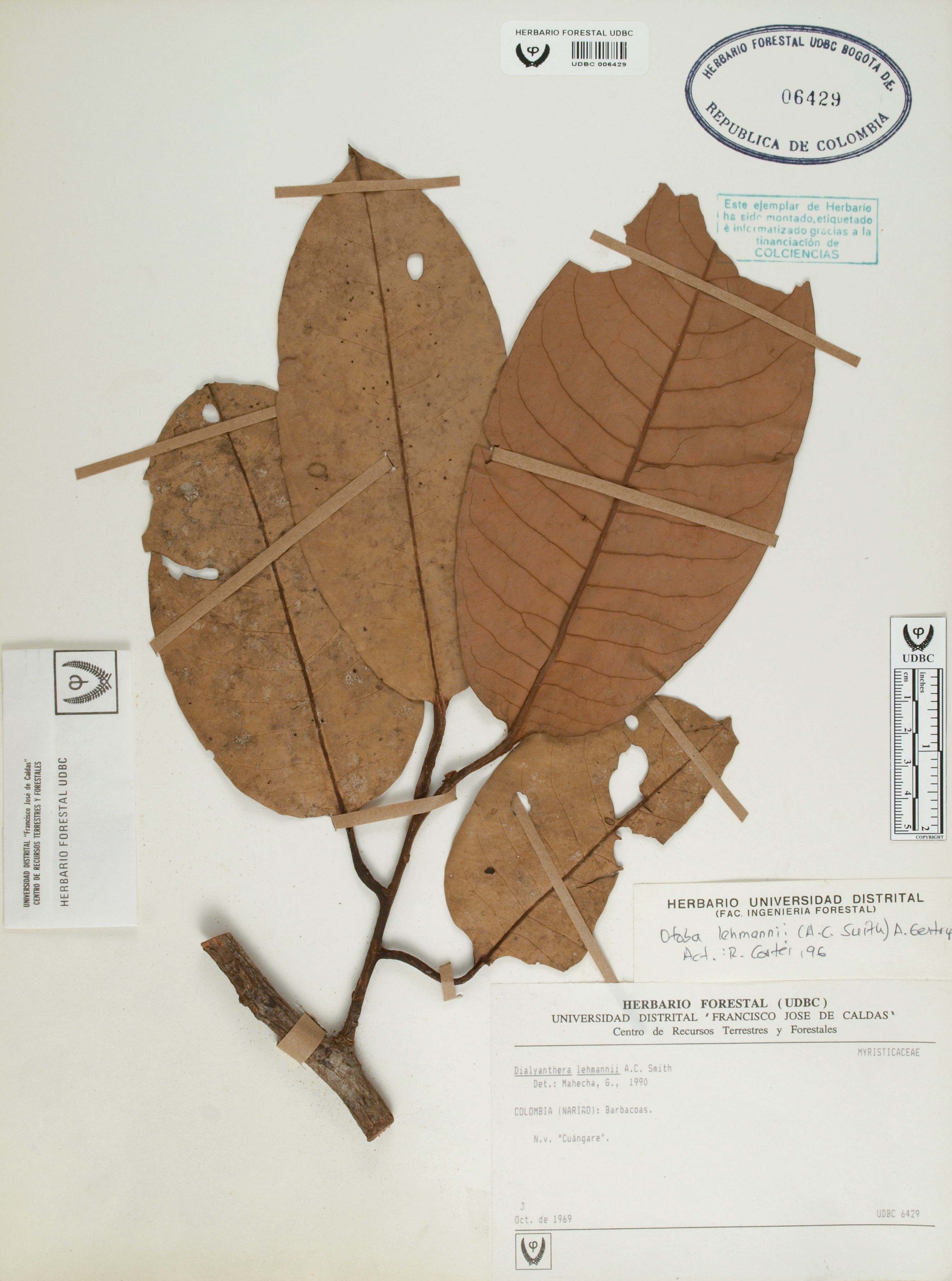 | dc.description | Fotografía del ejemplar SD 3, determinado como Otoba lehmannii en el año 1990 | |