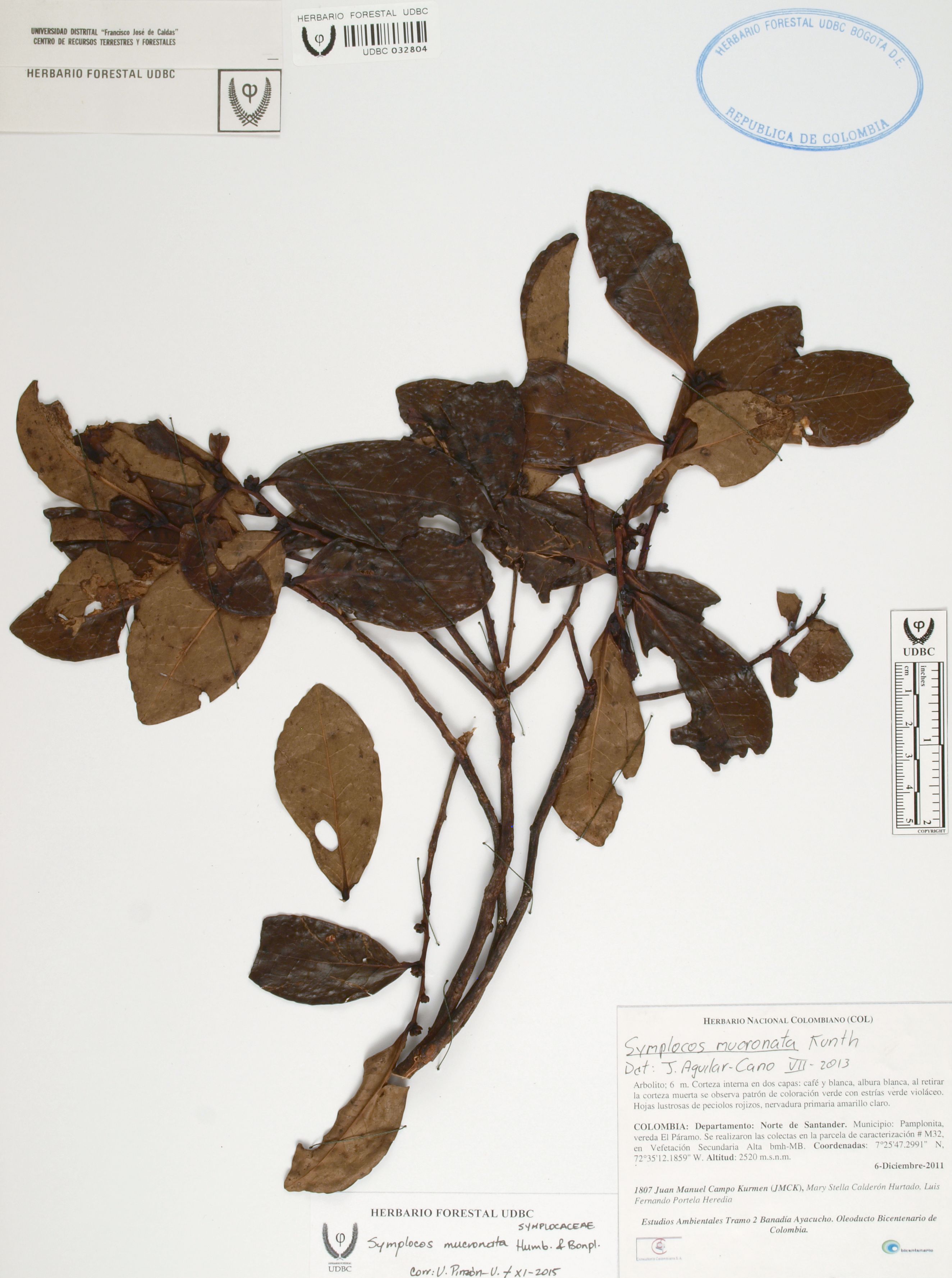 Fotografía del ejemplar Campo, J. 1807, determinado como Symplocos mucronata en el año 2015