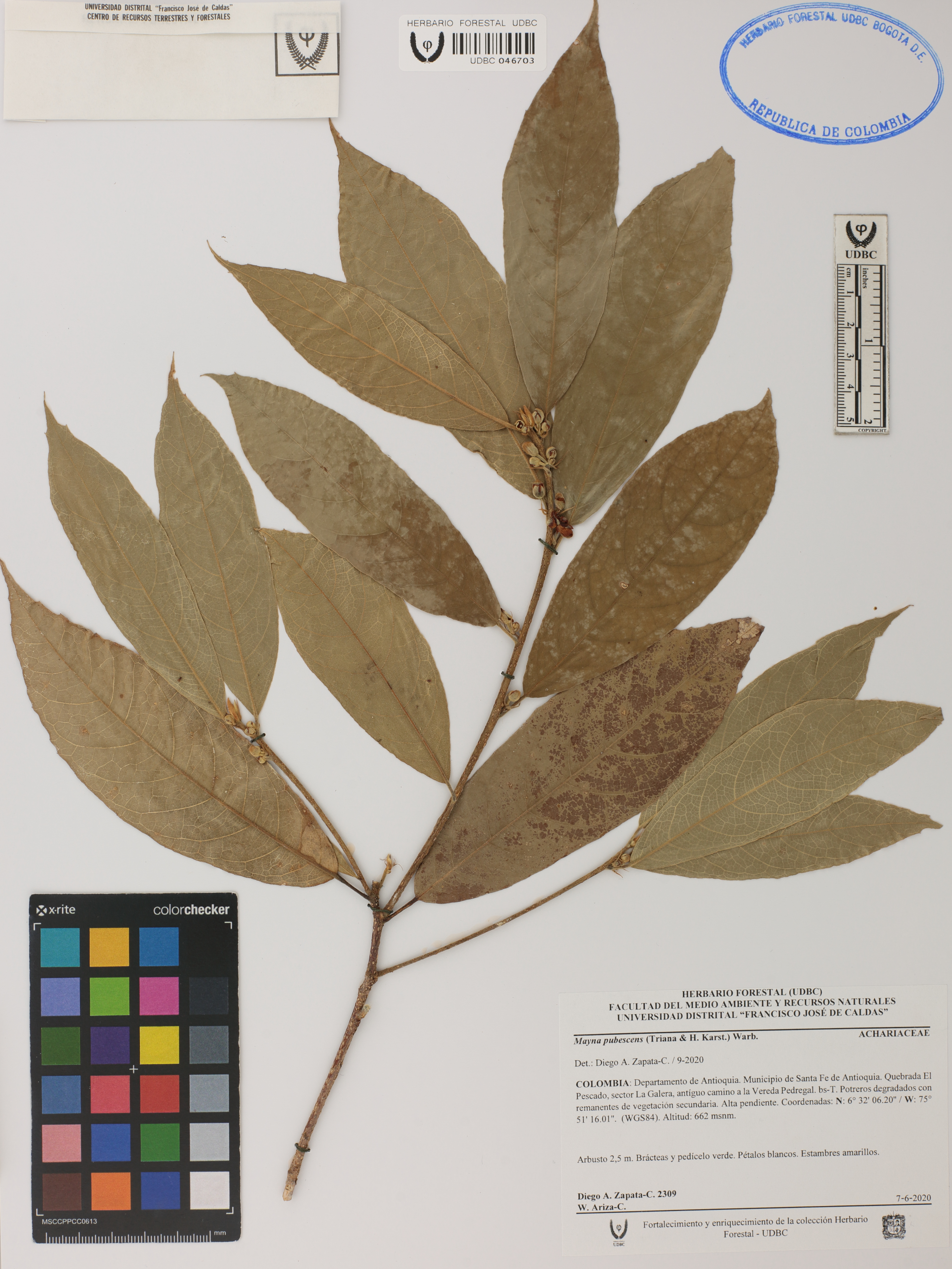 Fotografía del ejemplar Zapata-C., D. 2309, determinado como Mayna pubescens en el año 2020