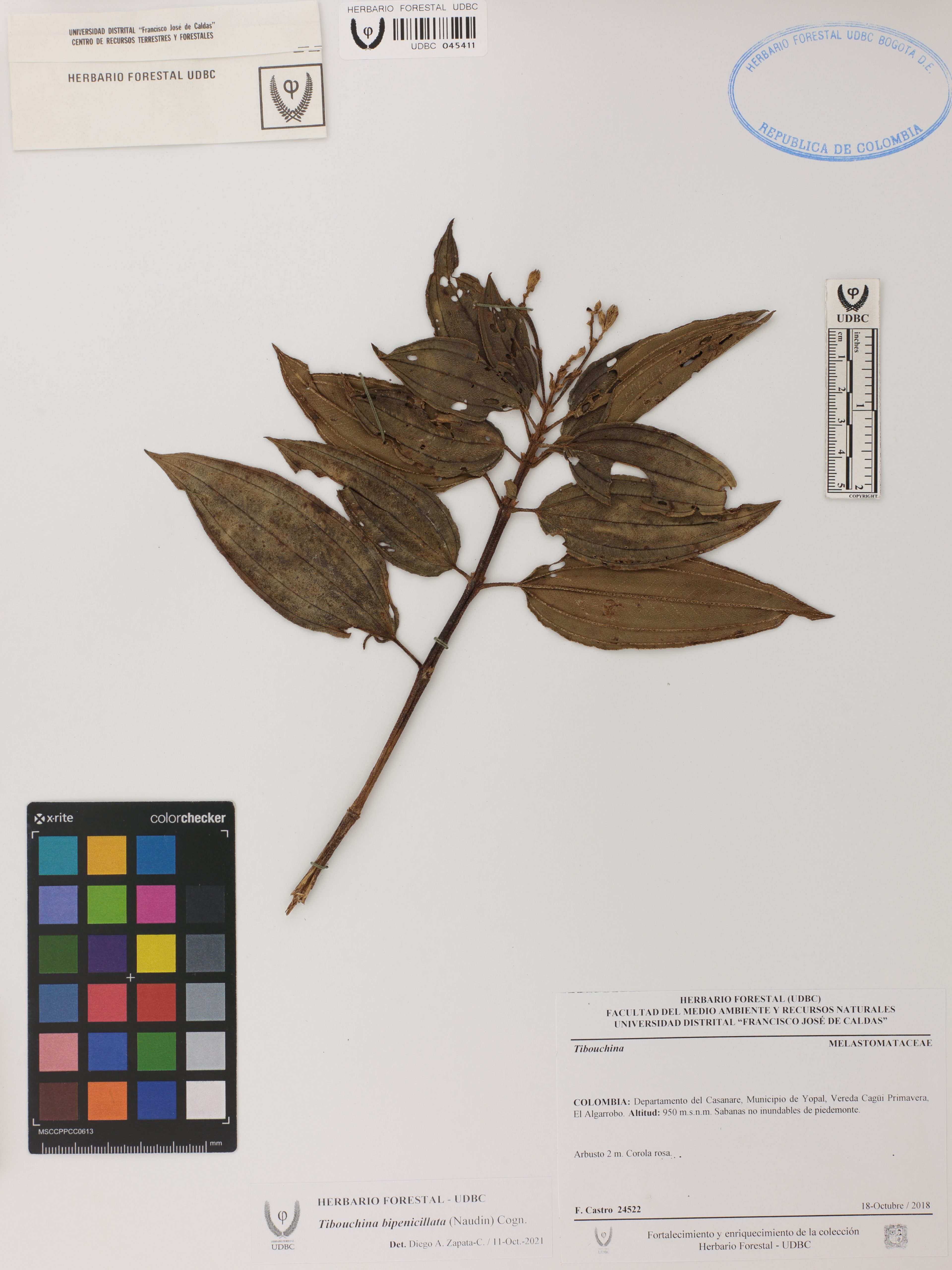 Fotografía del ejemplar Castro, F. 24522, determinado como Tibouchina bipenicillata en el año 2021