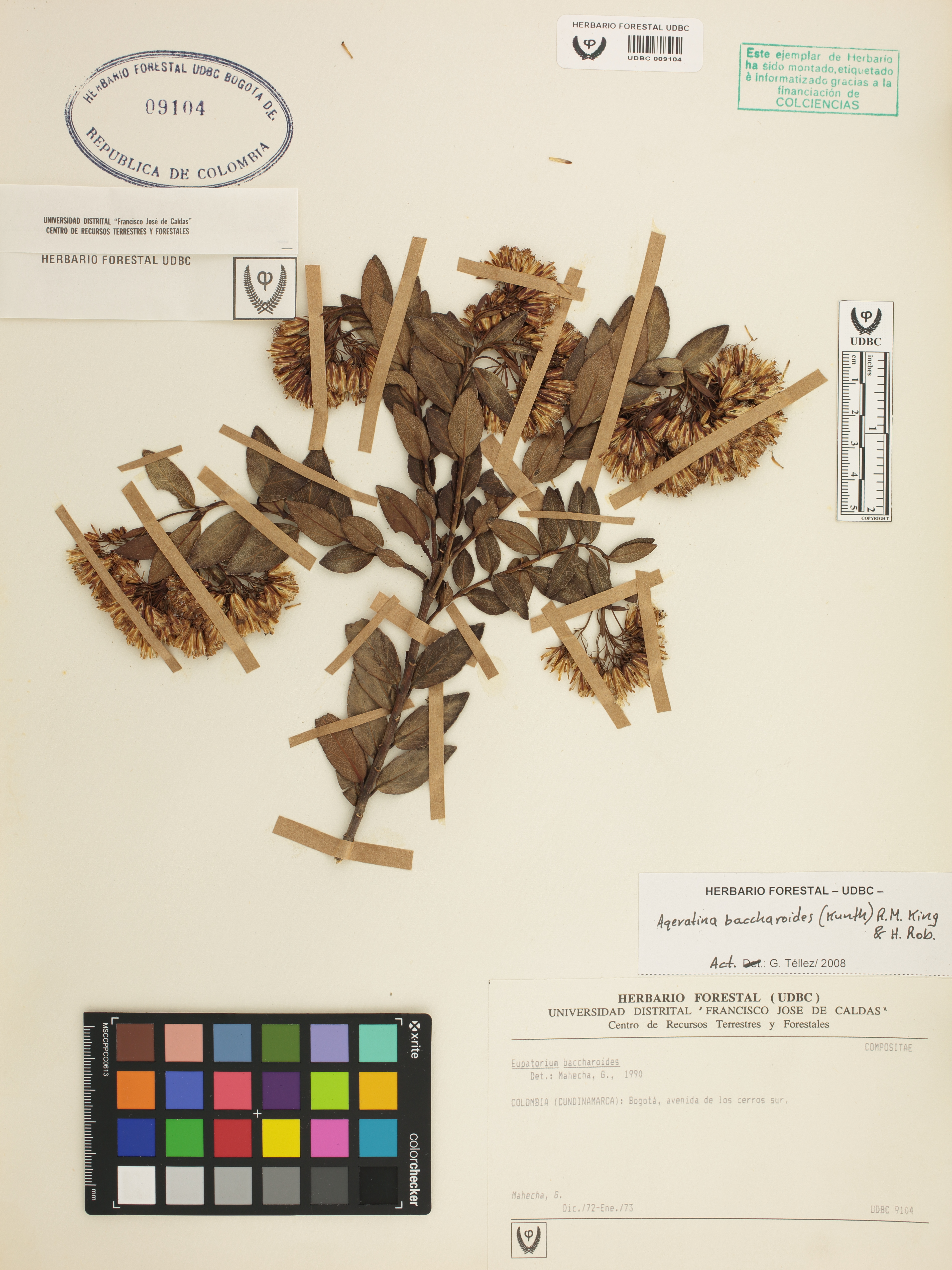 Fotografía del ejemplar Mahecha, G., determinado como Ageratina baccharoides en el año 2008