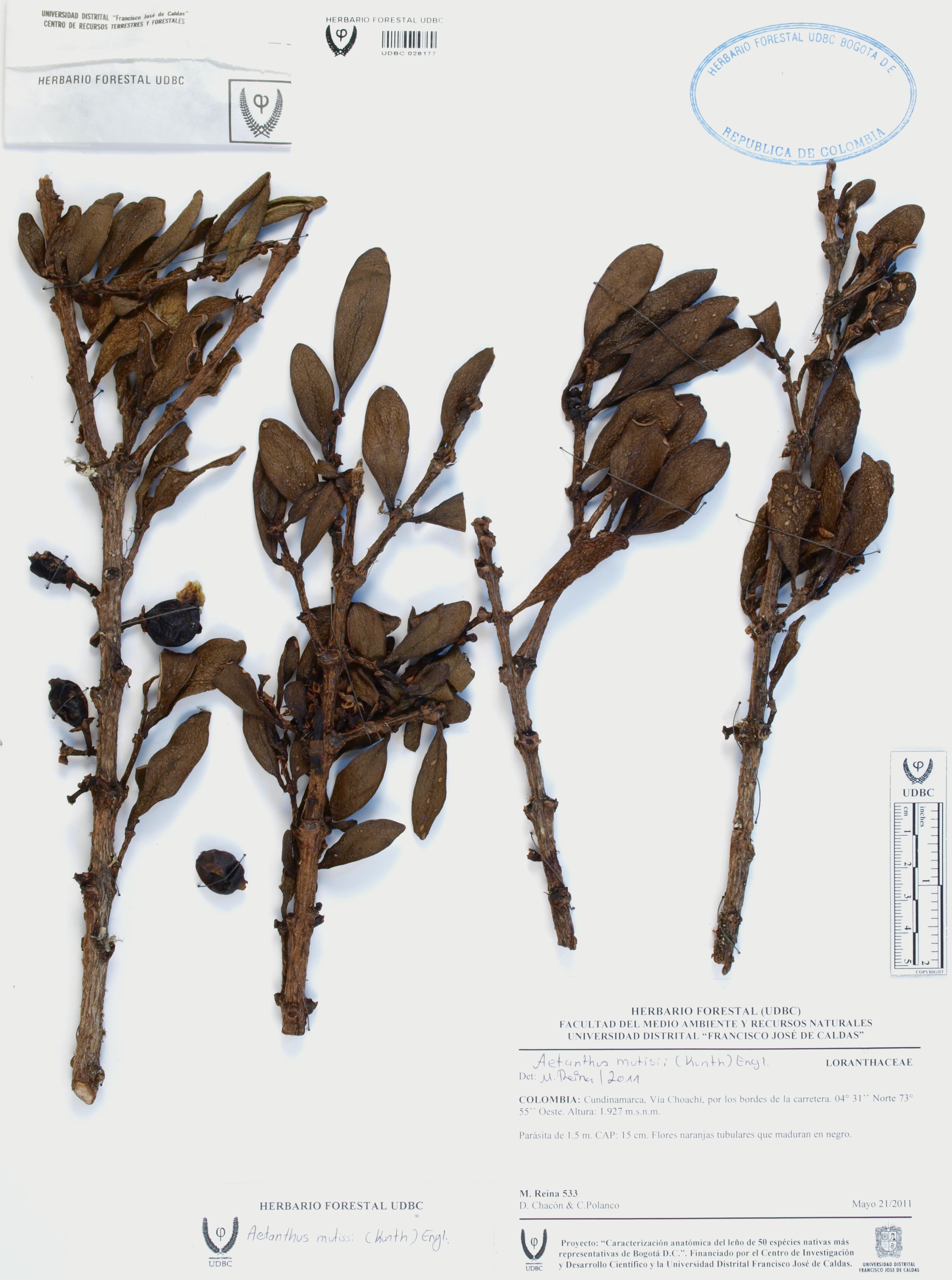 | dc.description | Fotografía del ejemplar Reina, M. 533, determinado como Aetanthus mutisii en el año 2011 | |