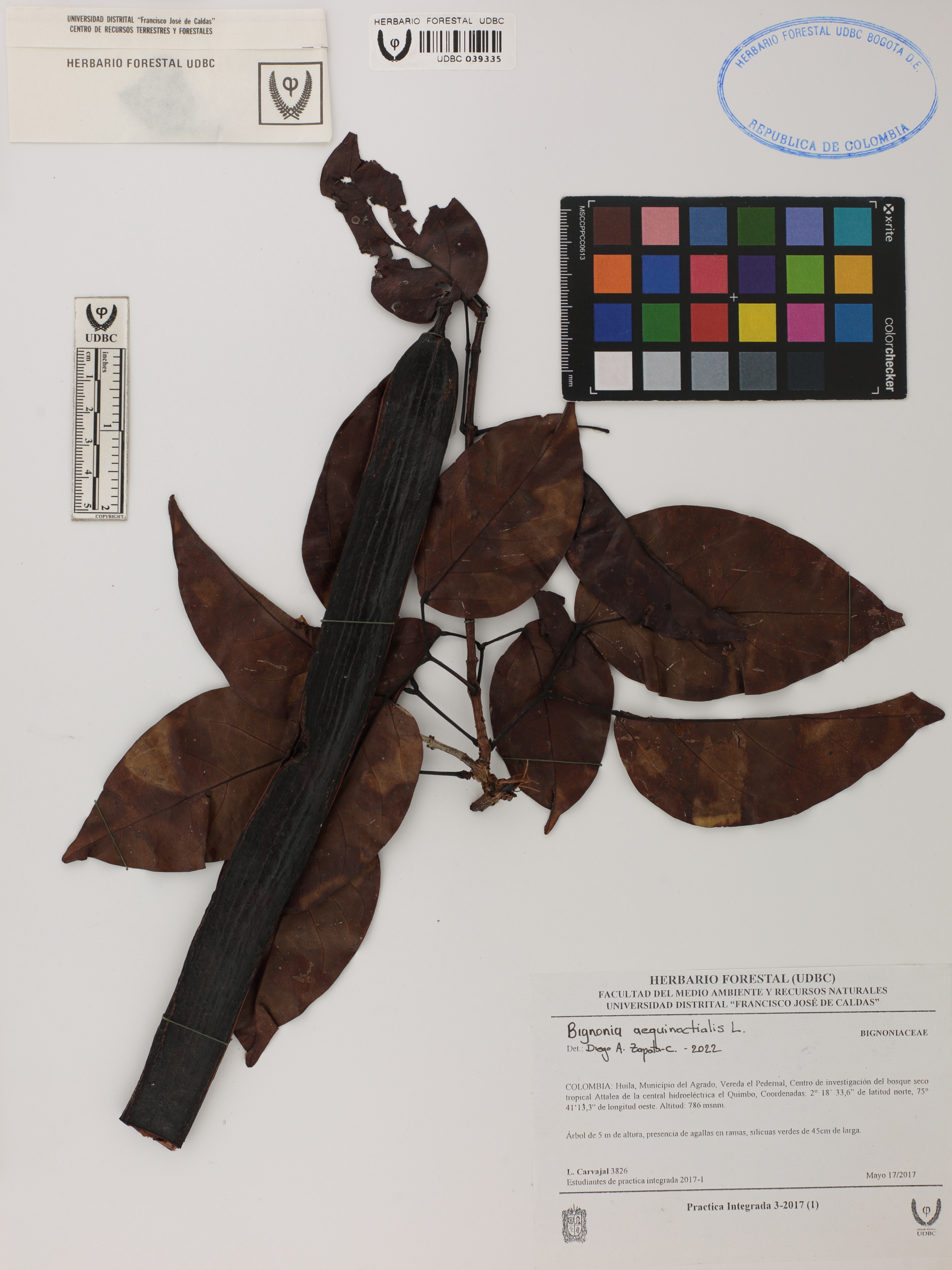 | dc.description | Fotografía del ejemplar Carvajal, L. 3826, determinado como Bignonia aequinoctialis en el año 2022 | |