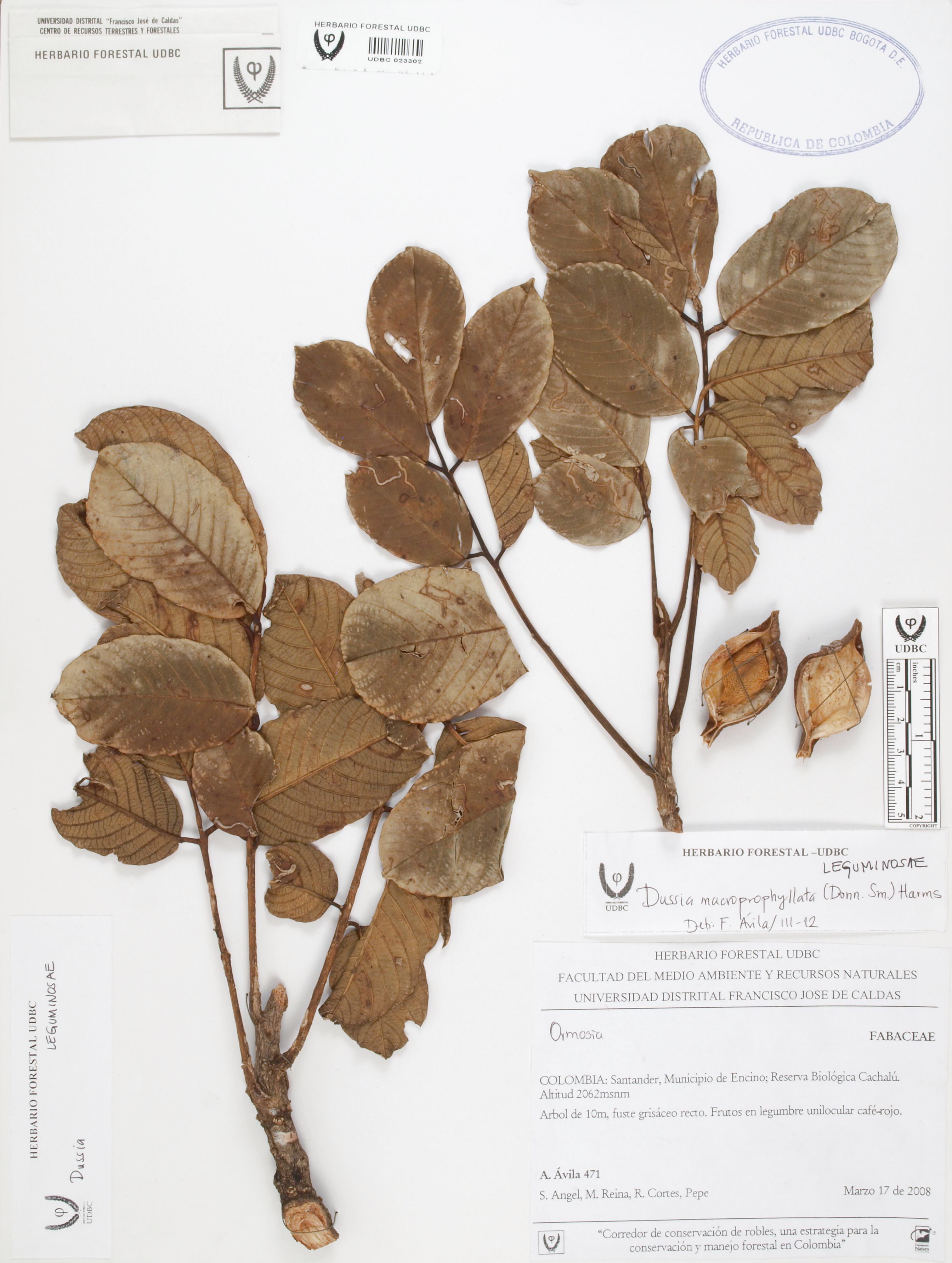 Fotografía del ejemplar Ávila, A. 471, determinado como Dussia macroprophyllata en el año 2012