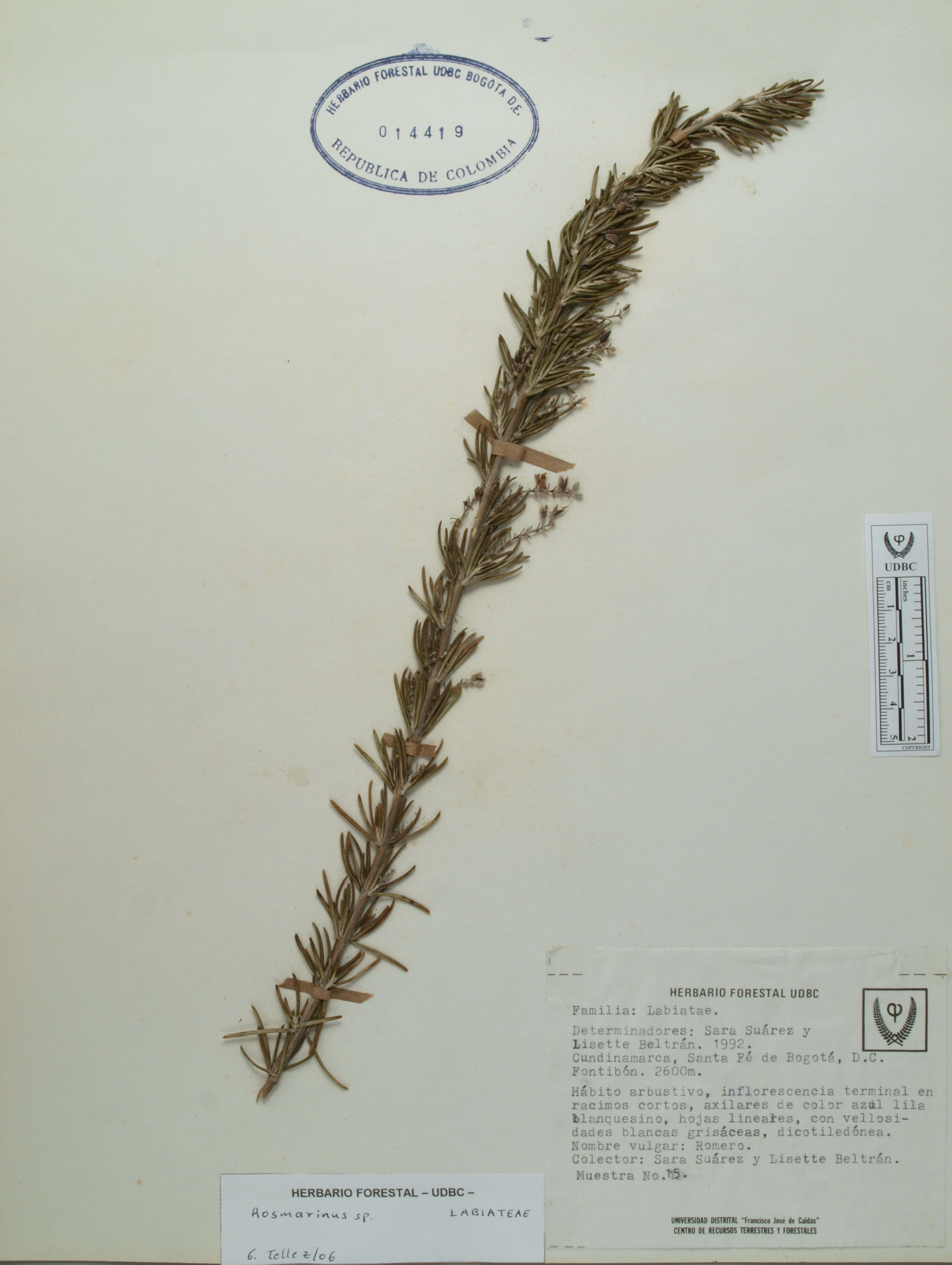 | dc.description | Fotografía del ejemplar Suárez, S. 15, determinado como Rosmarinus sp. en el año 2006 | |
