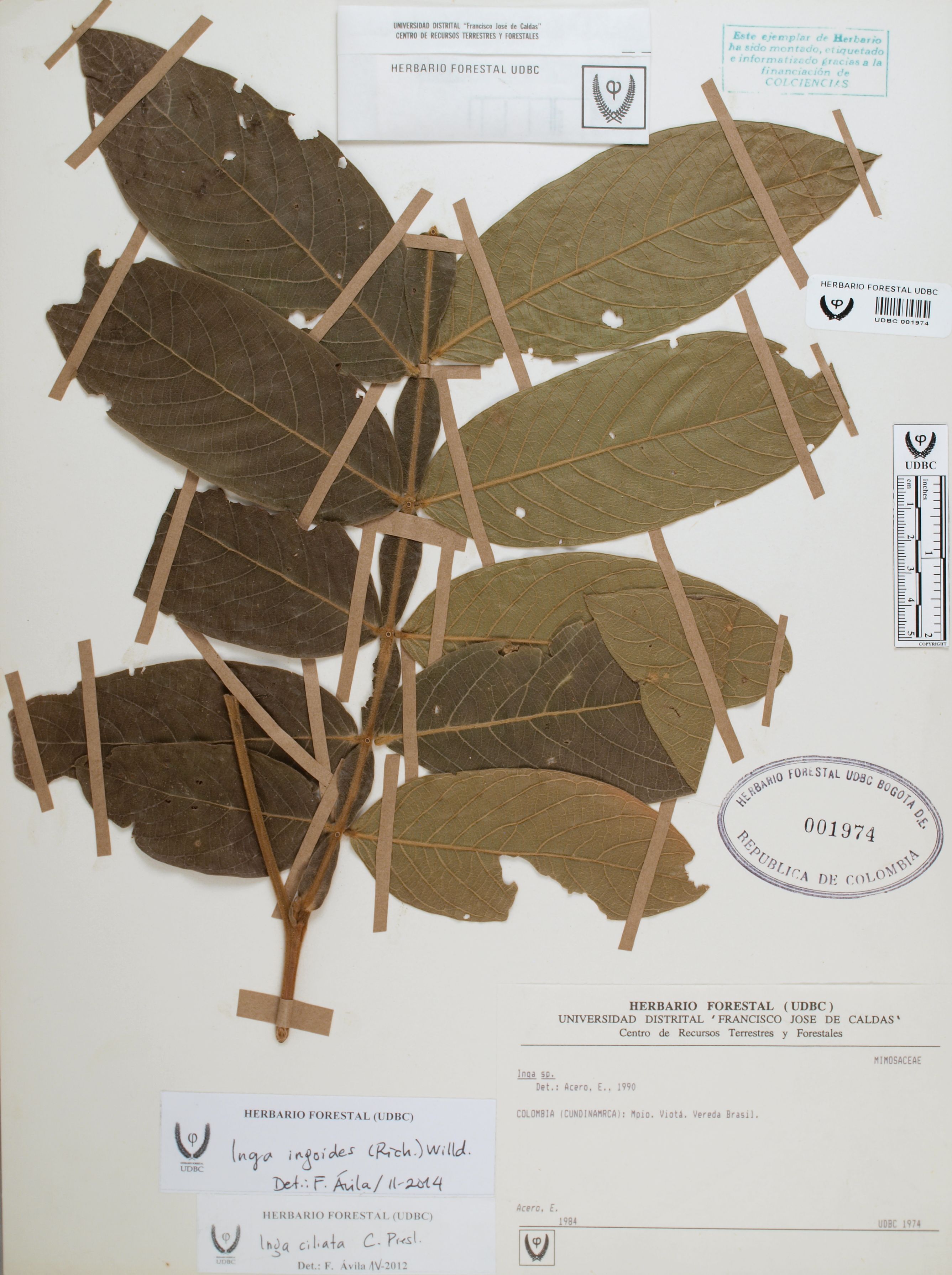 Fotografía del ejemplar Acero, E., determinado como Inga ingoides en el año 2014