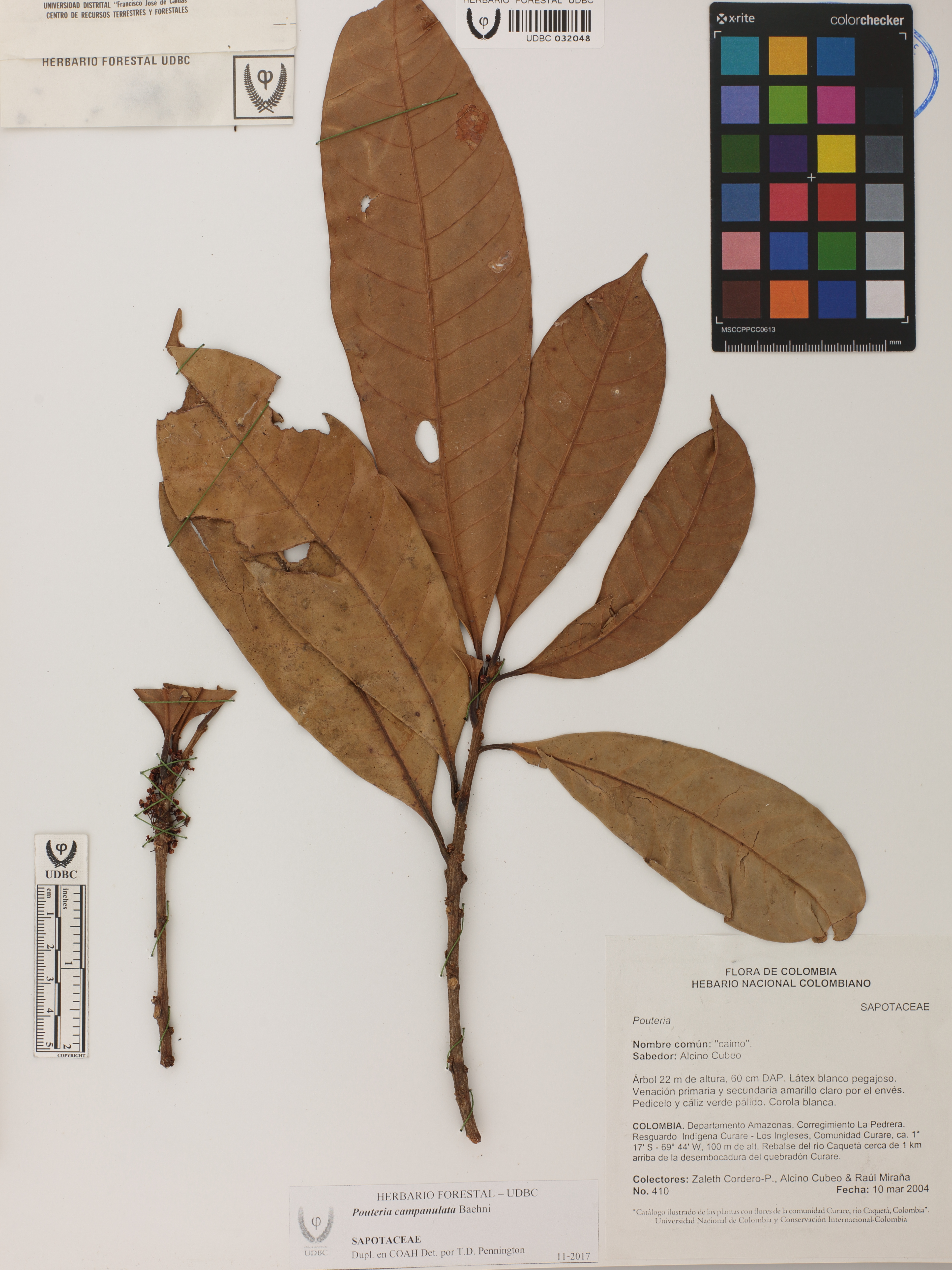 Fotografía del ejemplar Cordero-P., Z. 410, determinado como Pouteria campanulata en el año 2017