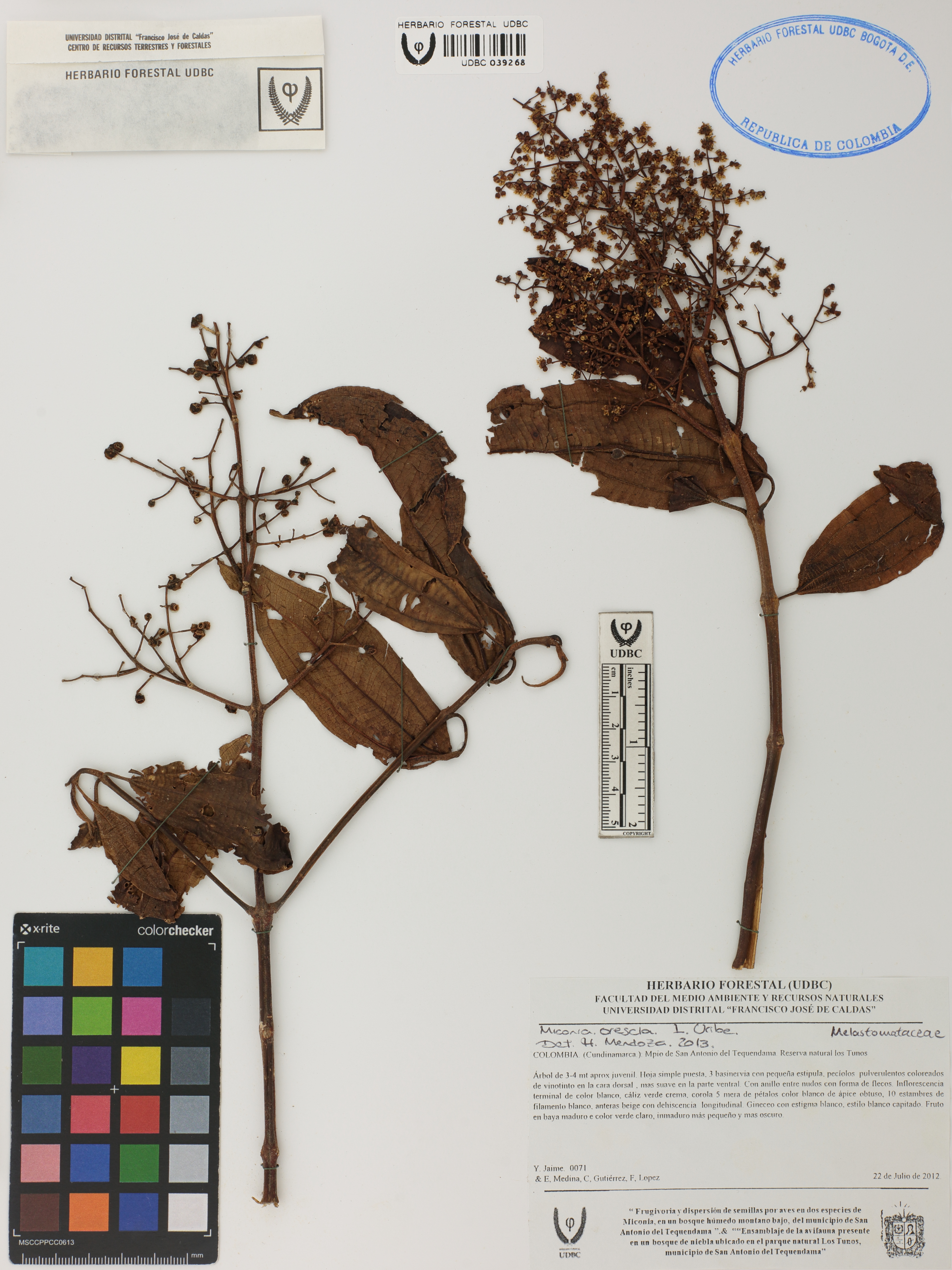 Fotografía del ejemplar Jaime, Y. 71, determinado como Miconia orescia en el año 2013