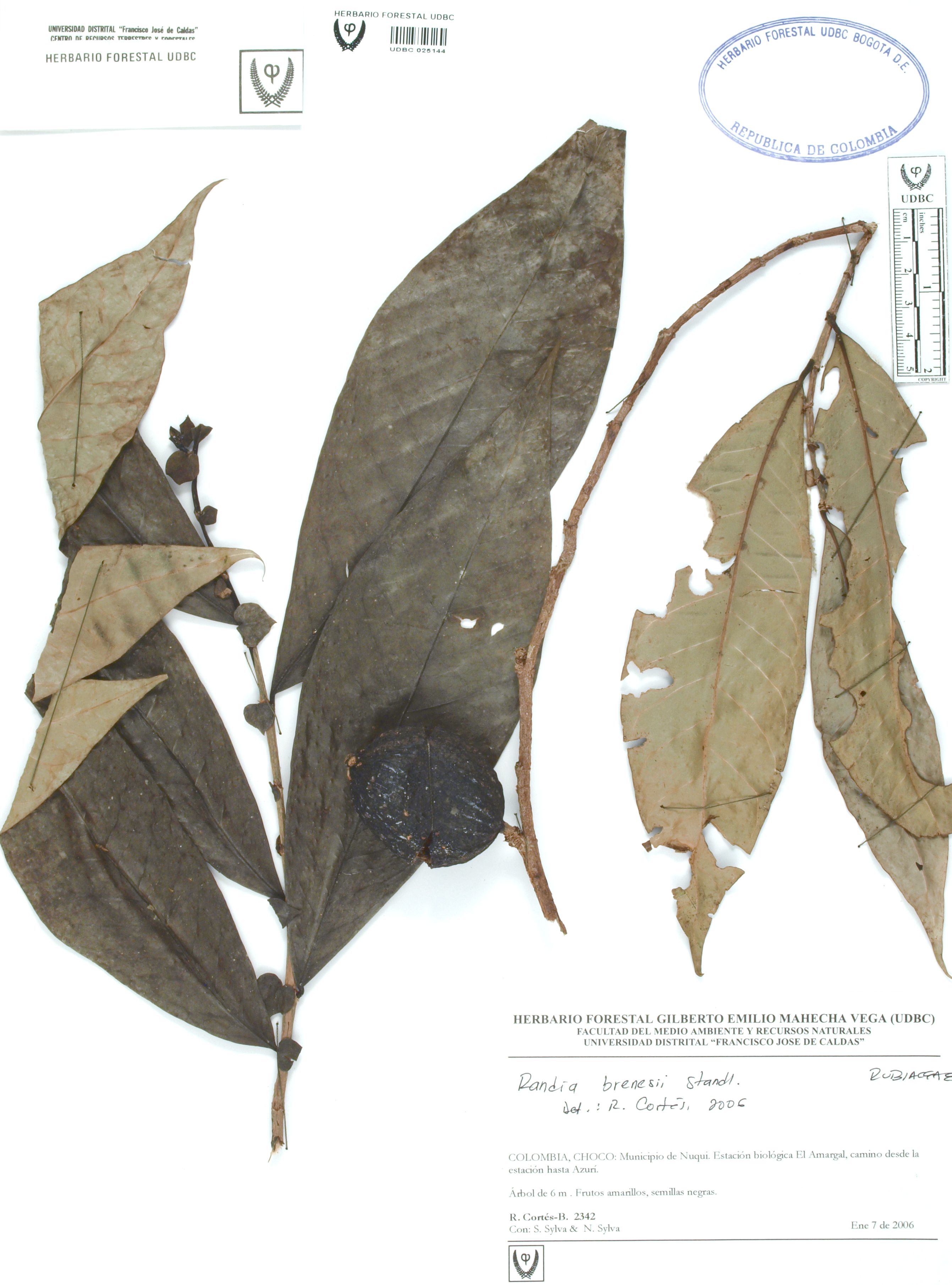 | dc.description | Fotografía del ejemplar Cortés-B., R. 2342, determinado como Randia brenesii en el año 2006 | |