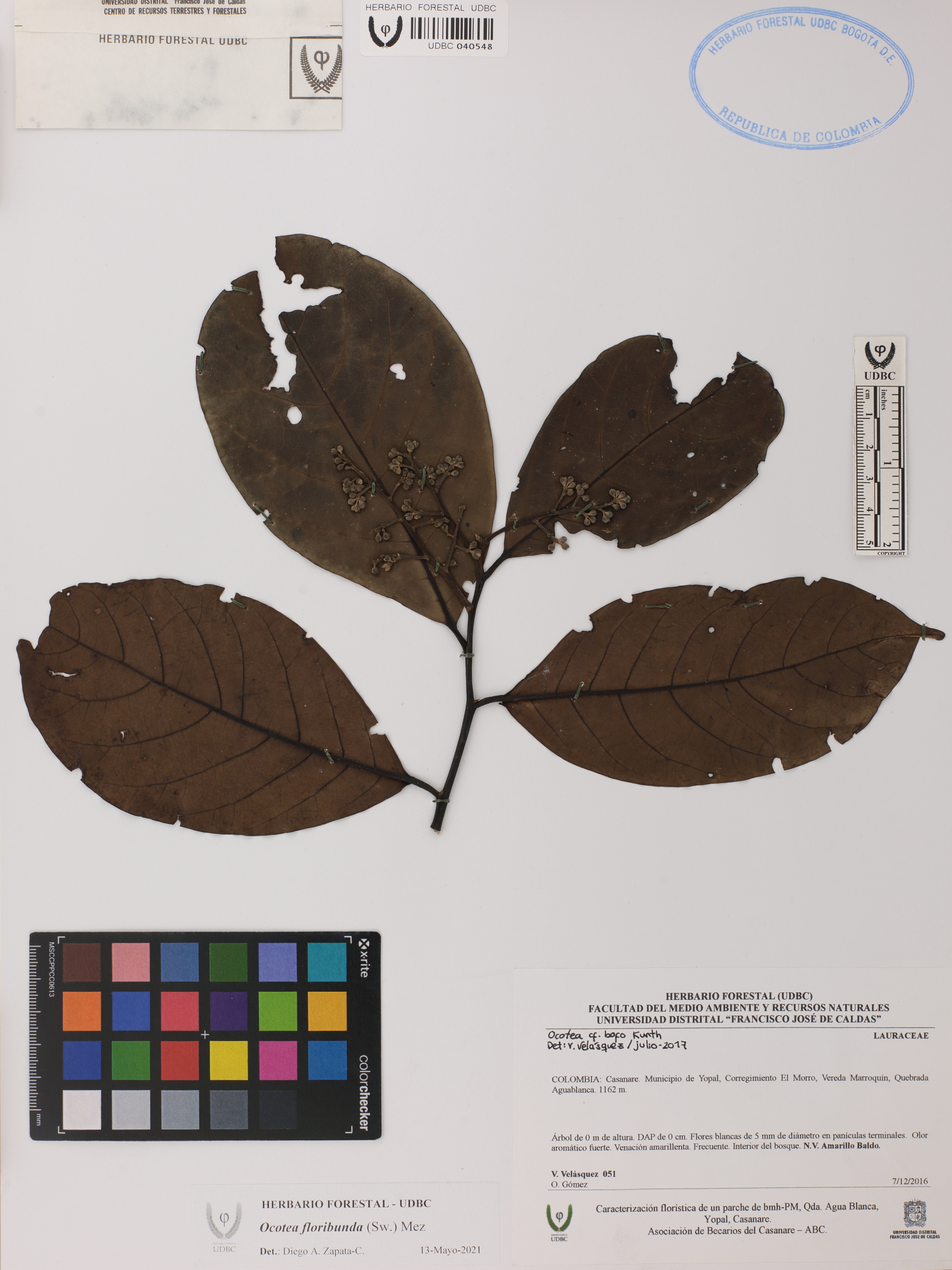 | dc.description | Fotografía del ejemplar Velásquez, V. 51, determinado como Ocotea floribunda en el año 2021 | |
