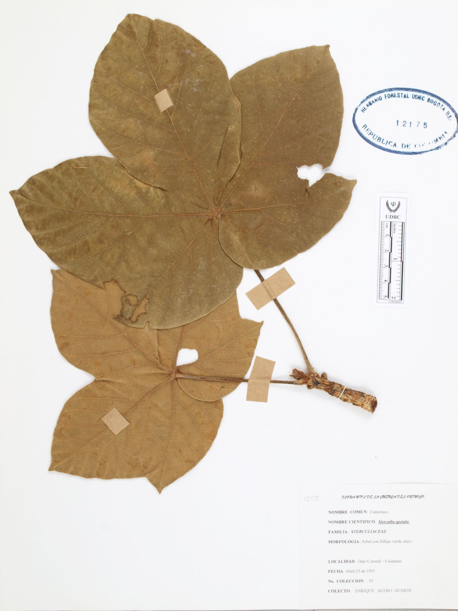 | dc.description | Fotografía del ejemplar Acero, E. 55, determinado como Sterculia apetala | |