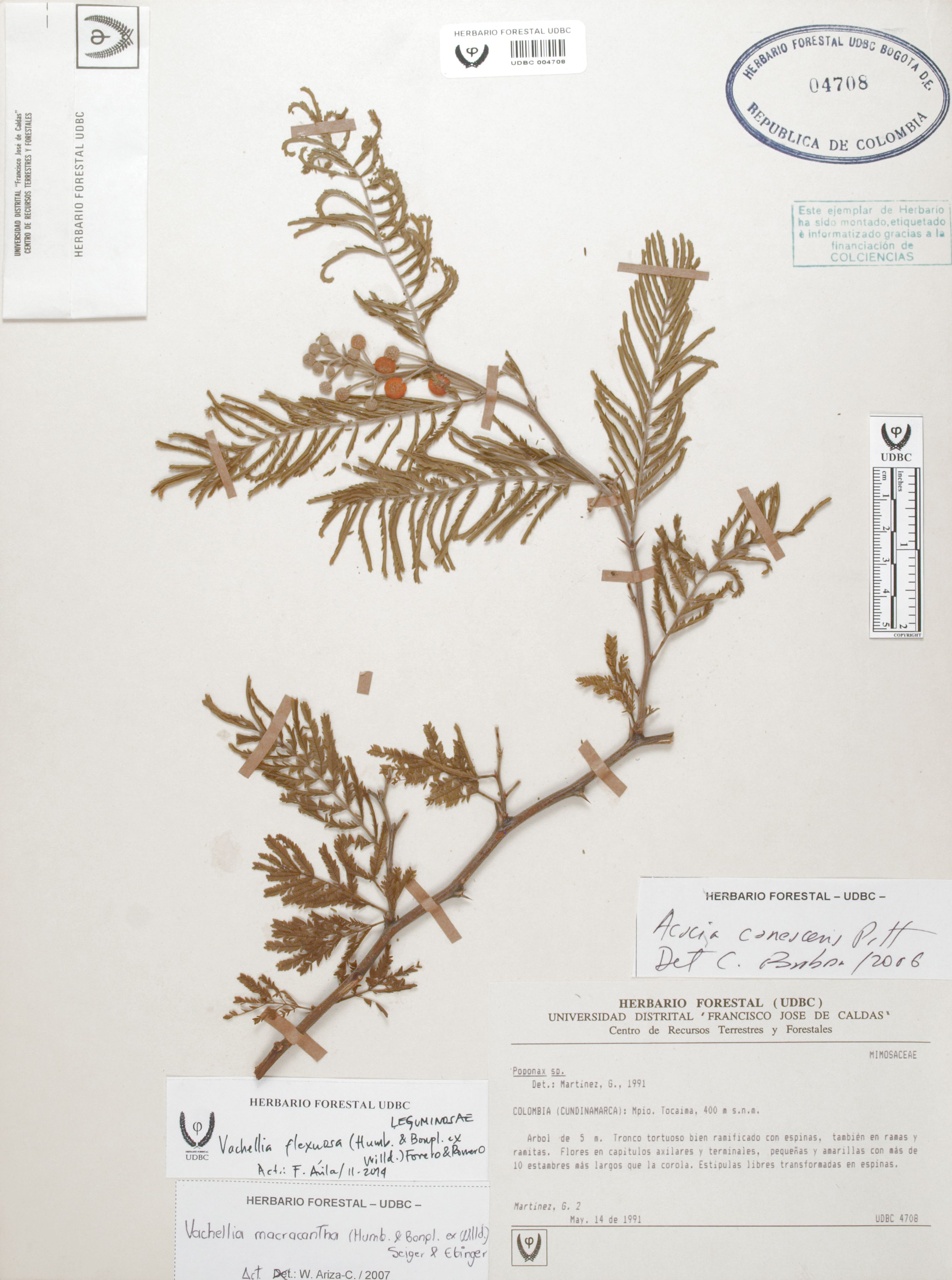 Fotografía del ejemplar Martínez, G. 2, determinado como Vachellia flexuosa en el año 2014