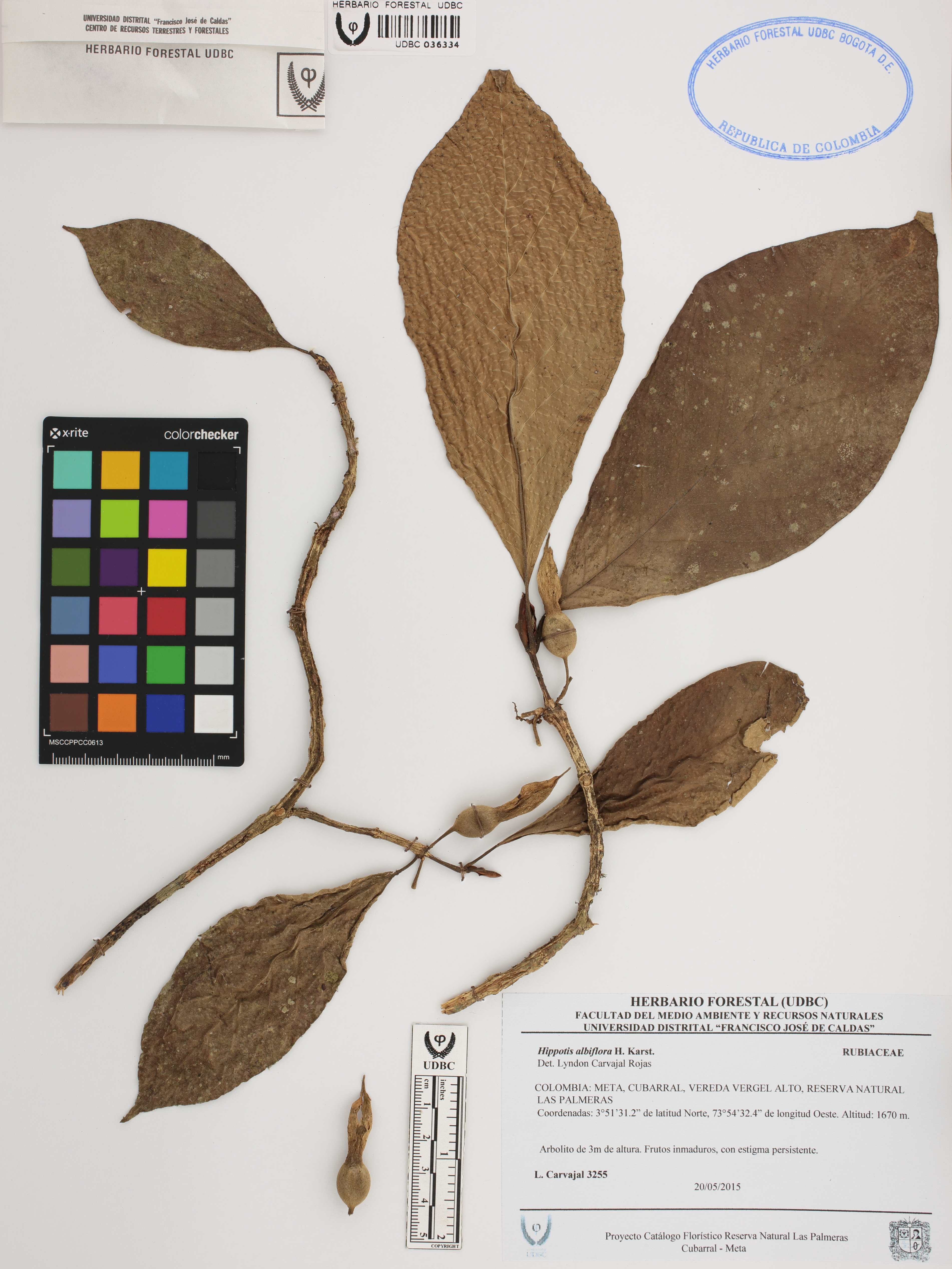| dc.description | Fotografía del ejemplar Carvajal, L. 3255, determinado como Hippotis albiflora | |