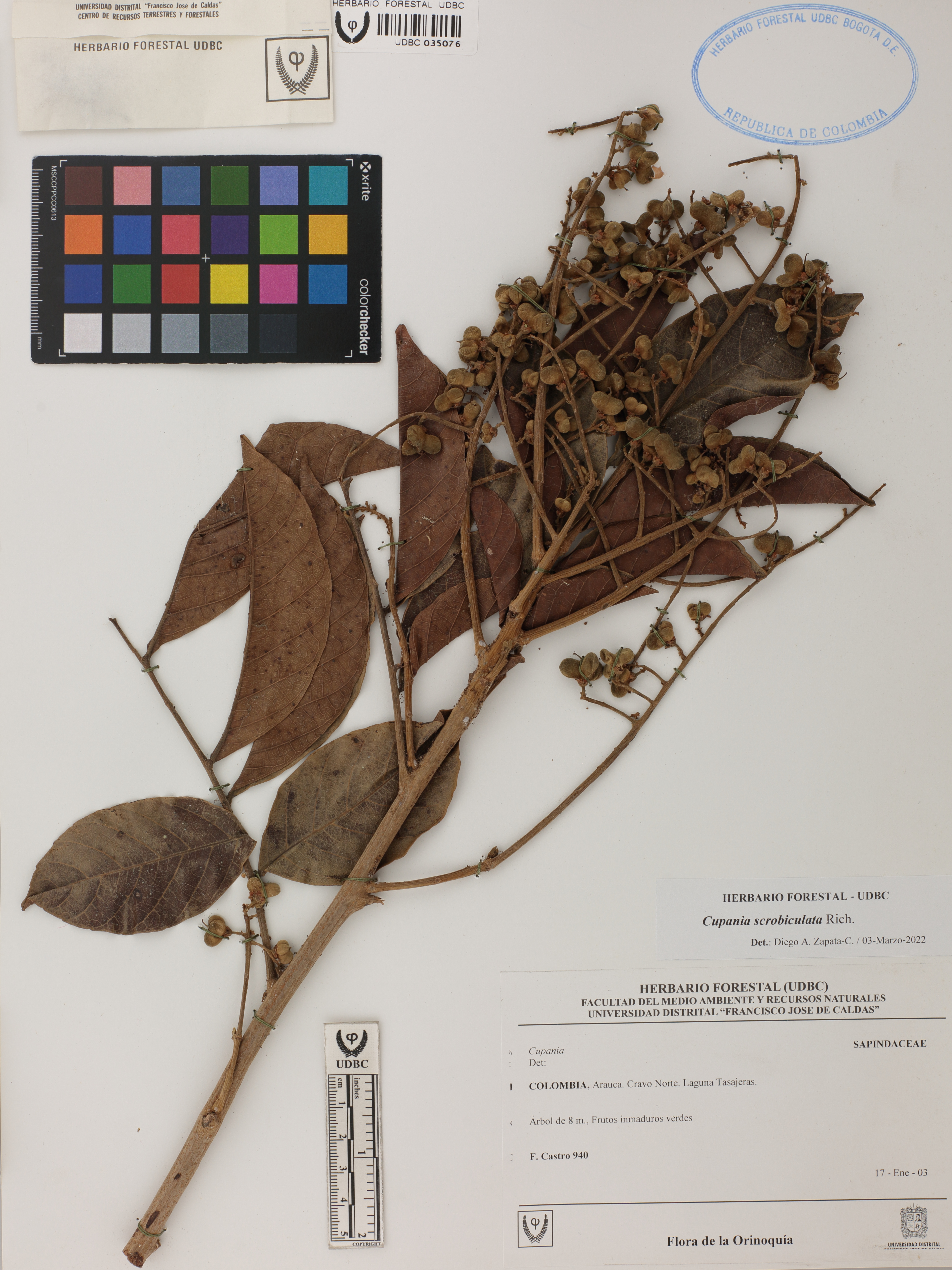 Fotografía del ejemplar Castro, F. 940, determinado como Cupania scrobiculata en el año 2022