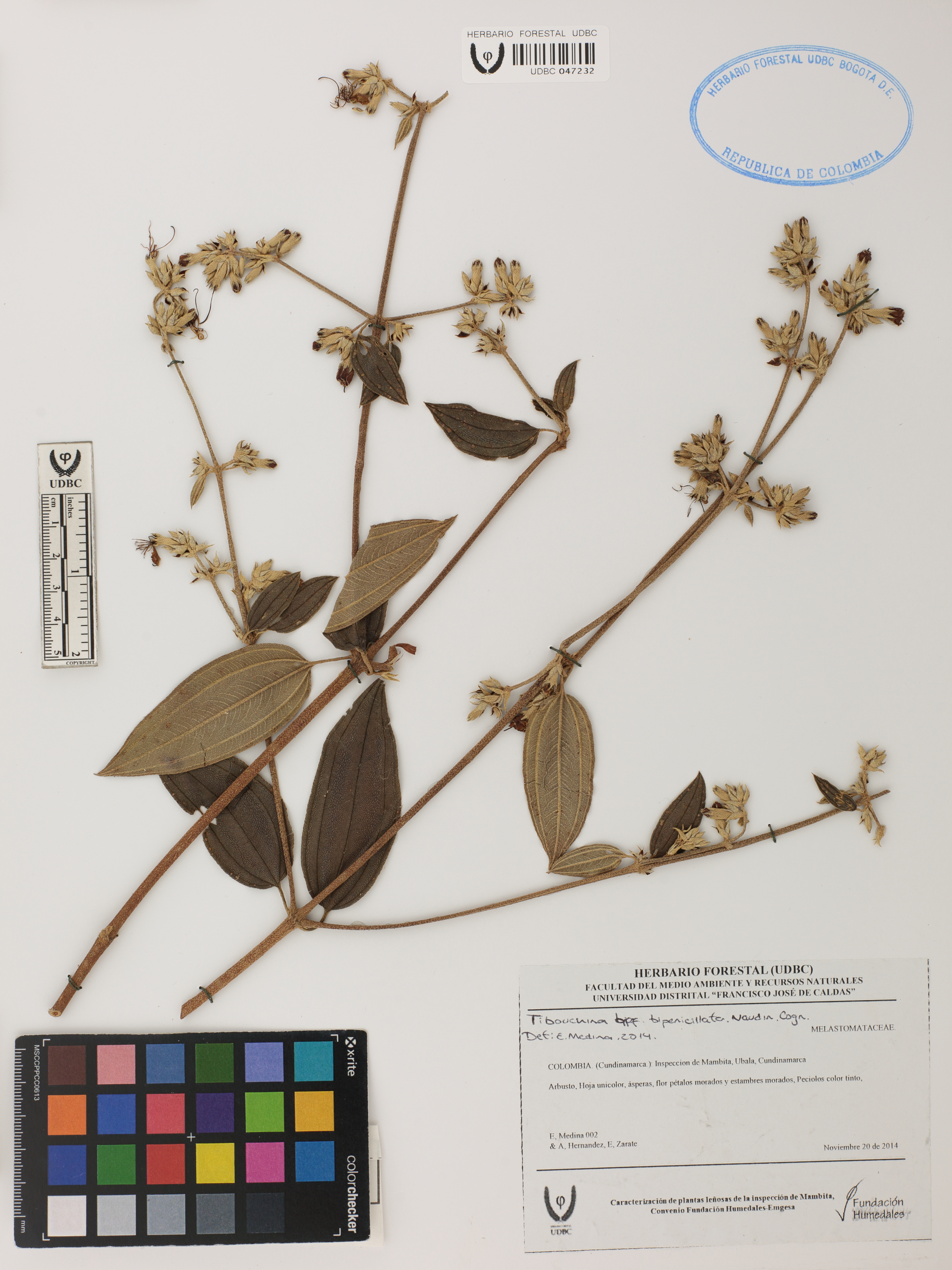 Fotografía del ejemplar Medina, E. 2, determinado como Tibouchina bipenicillata en el año 2014