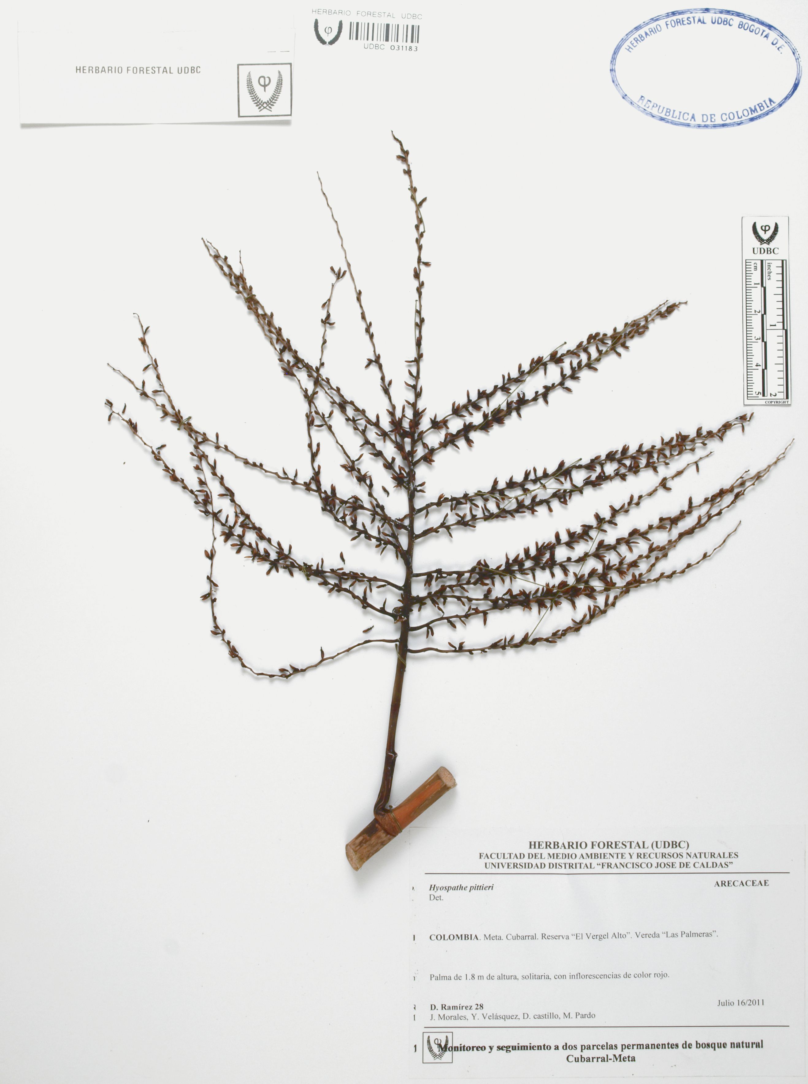 Fotografía del ejemplar Ramírez, D. 28, determinado como Hyospathe pittieri