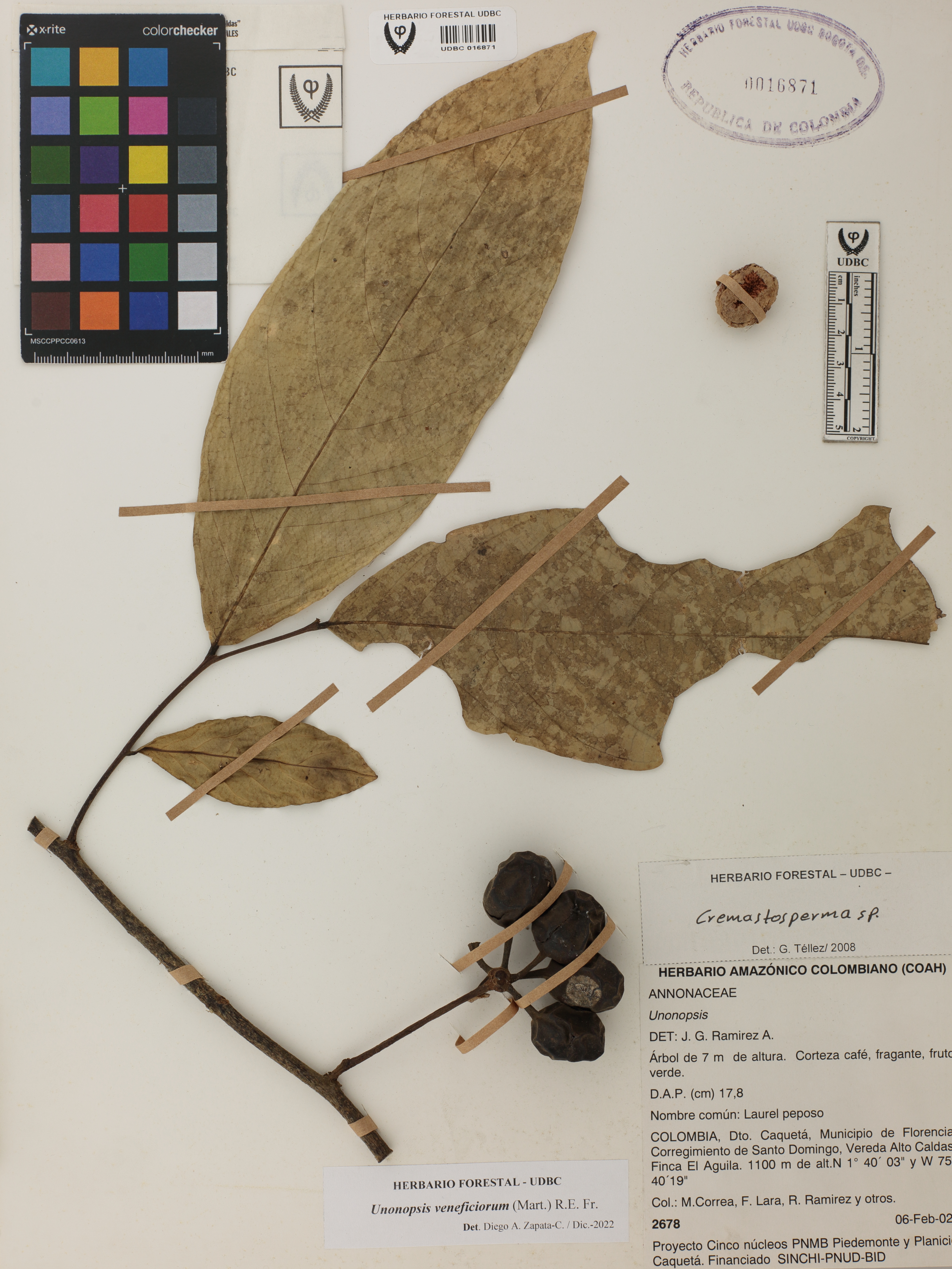 Fotografía del ejemplar Correa, M. 2678, determinado como Unonopsis veneficiorum en el año 2022