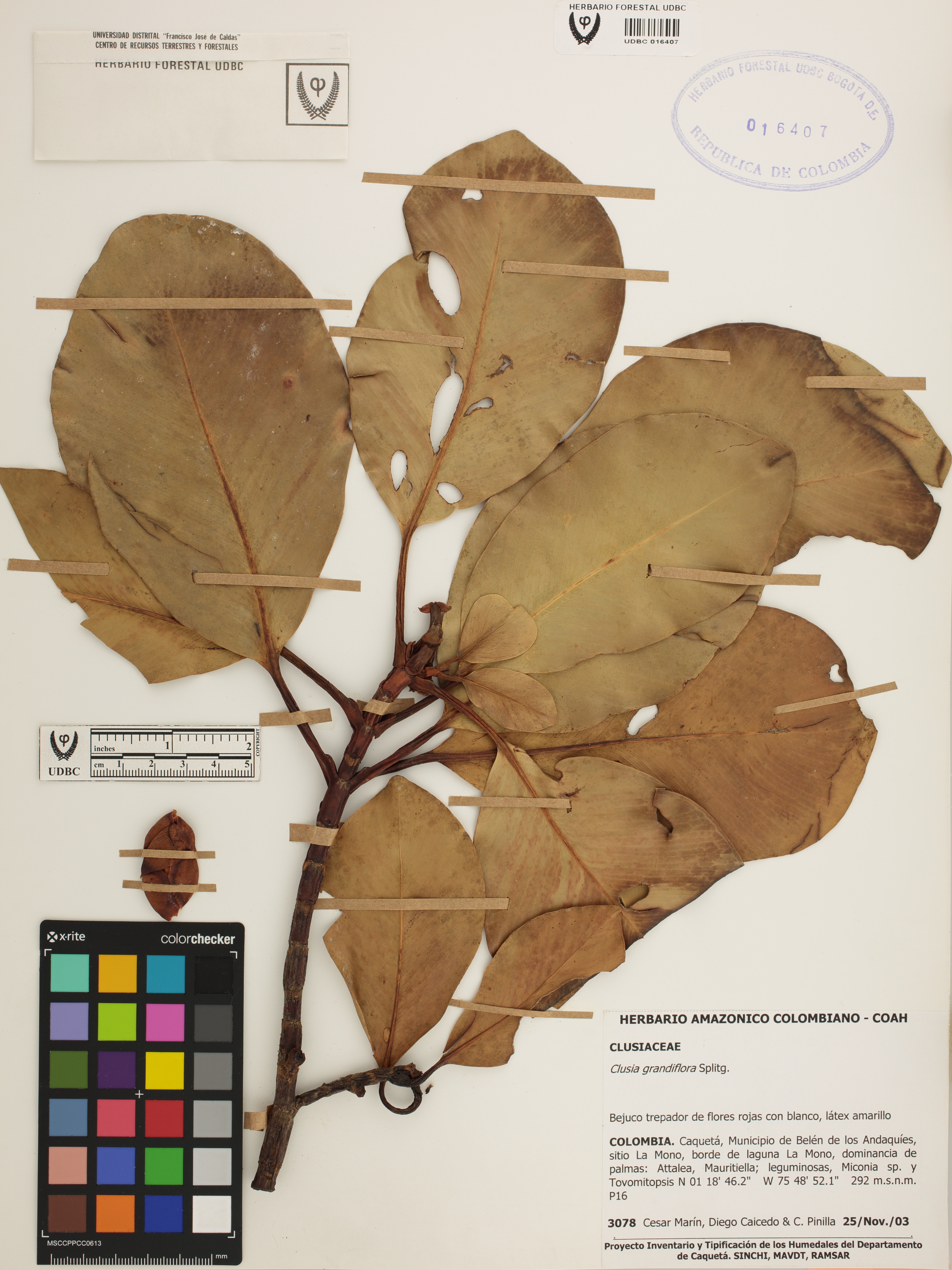 Fotografía del ejemplar Marín, C. 3078, determinado como Clusia grandiflora