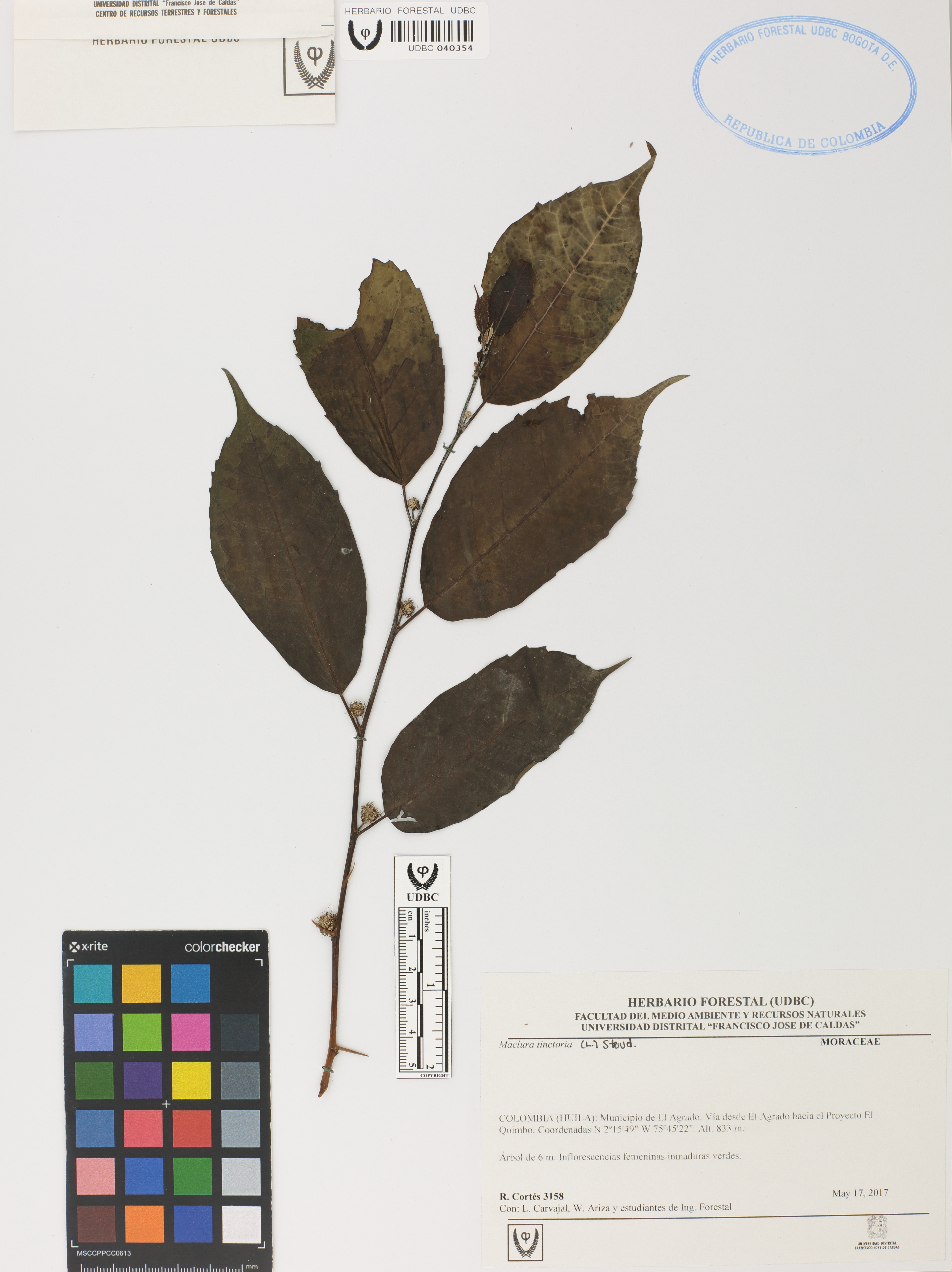 | dc.description | Fotografía del ejemplar Cortés, R. 3158, determinado como Maclura tinctoria | |