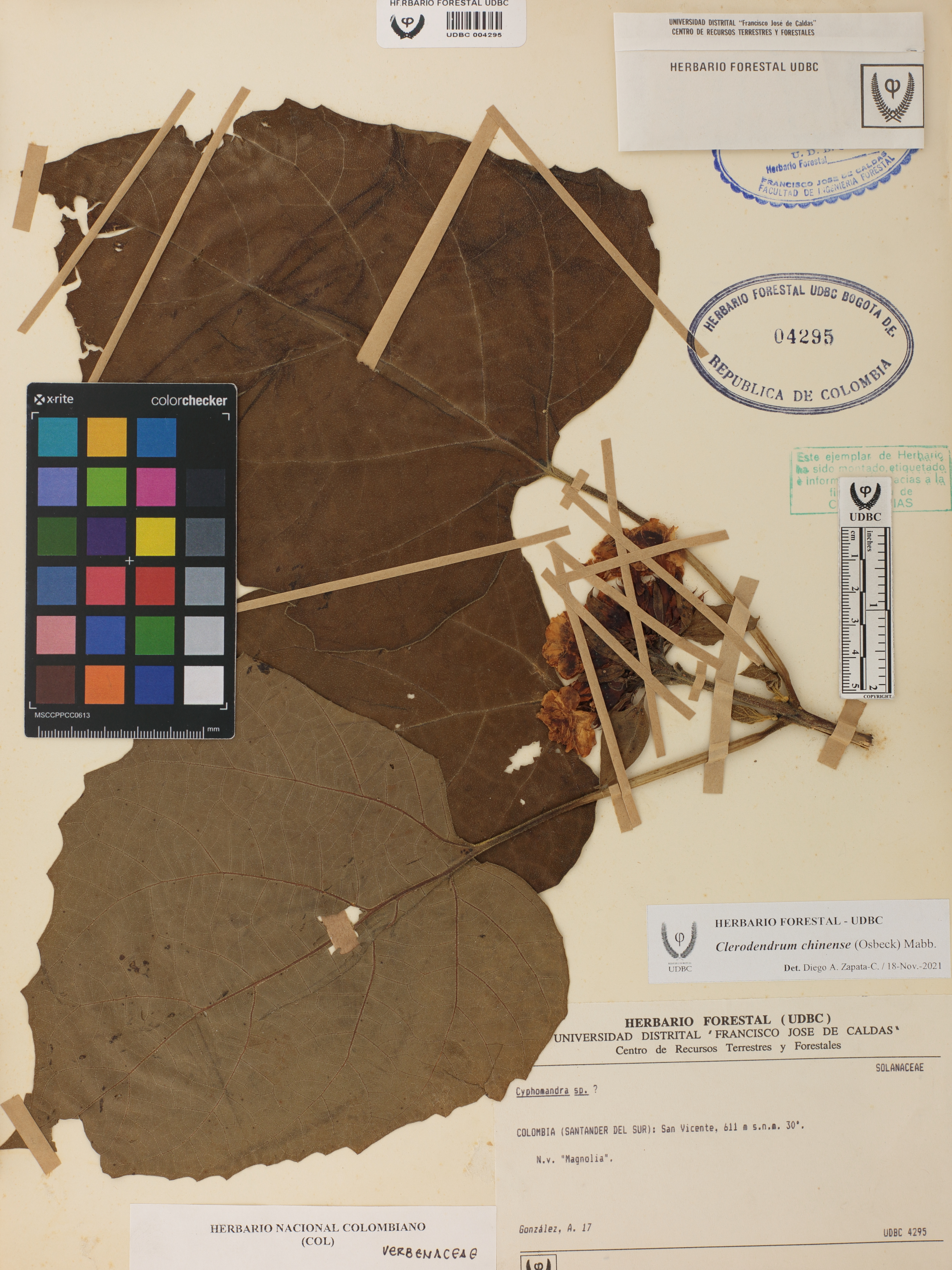 Fotografía del ejemplar González, A. 17, determinado como Clerodendrum chinense en el año 2021