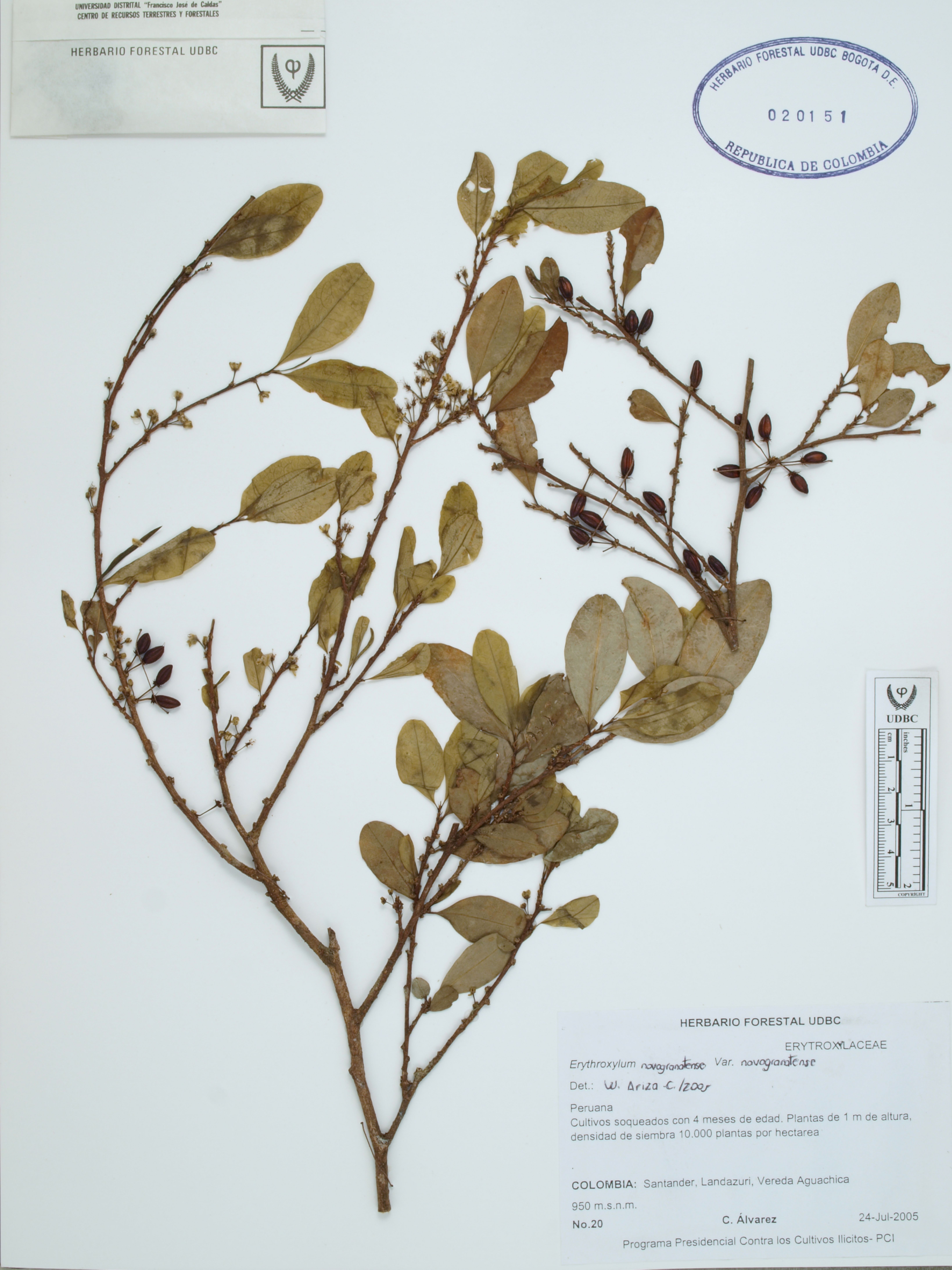 | dc.description | Fotografía del ejemplar Álvarez, C. 20, determinado como Erythroxylum novogranatense var. novogranatense en el año 2005 | |
