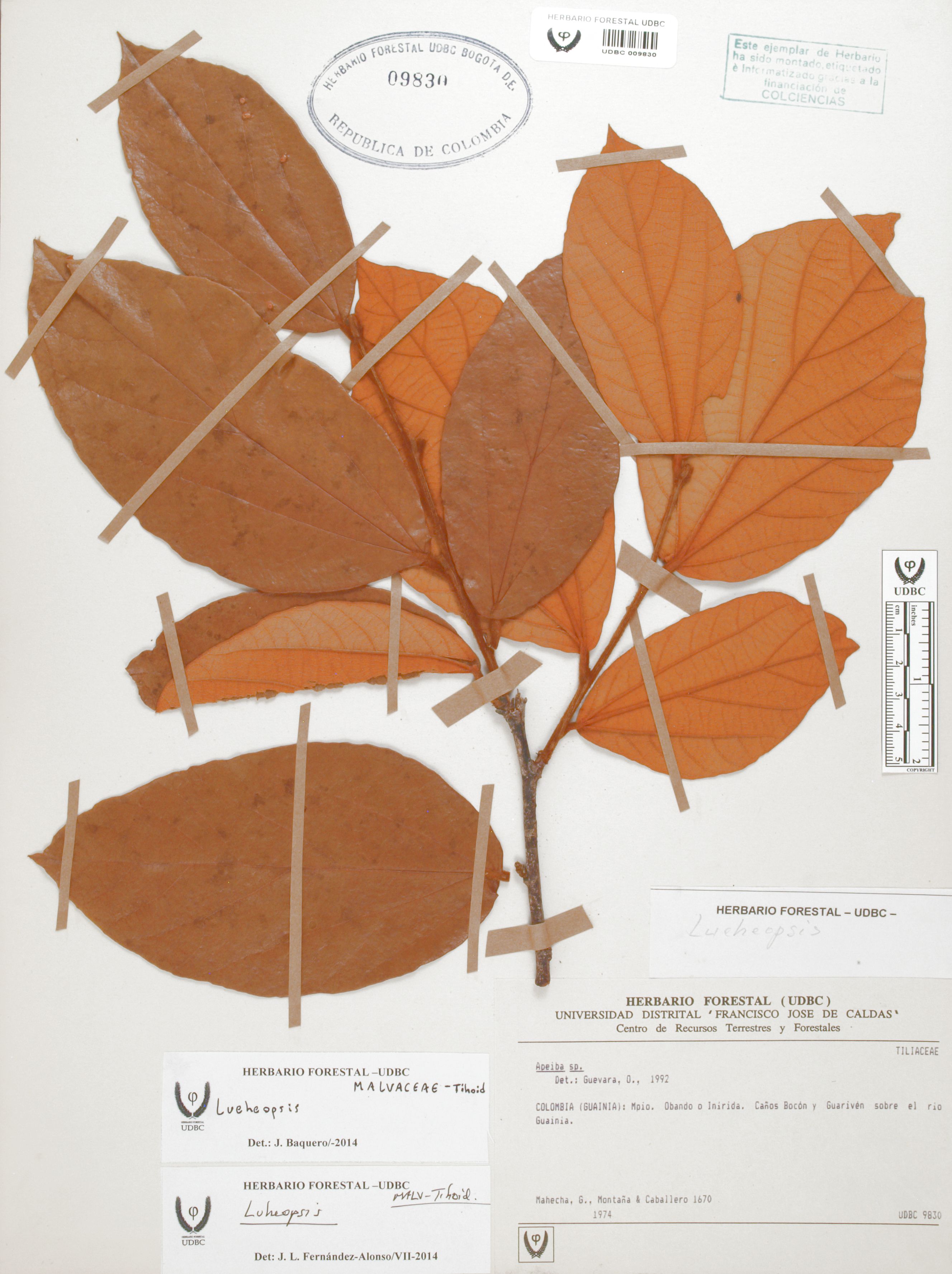 Fotografía del ejemplar Mahecha, G. 1670, determinado como Lueheopsis sp. en el año 2014
