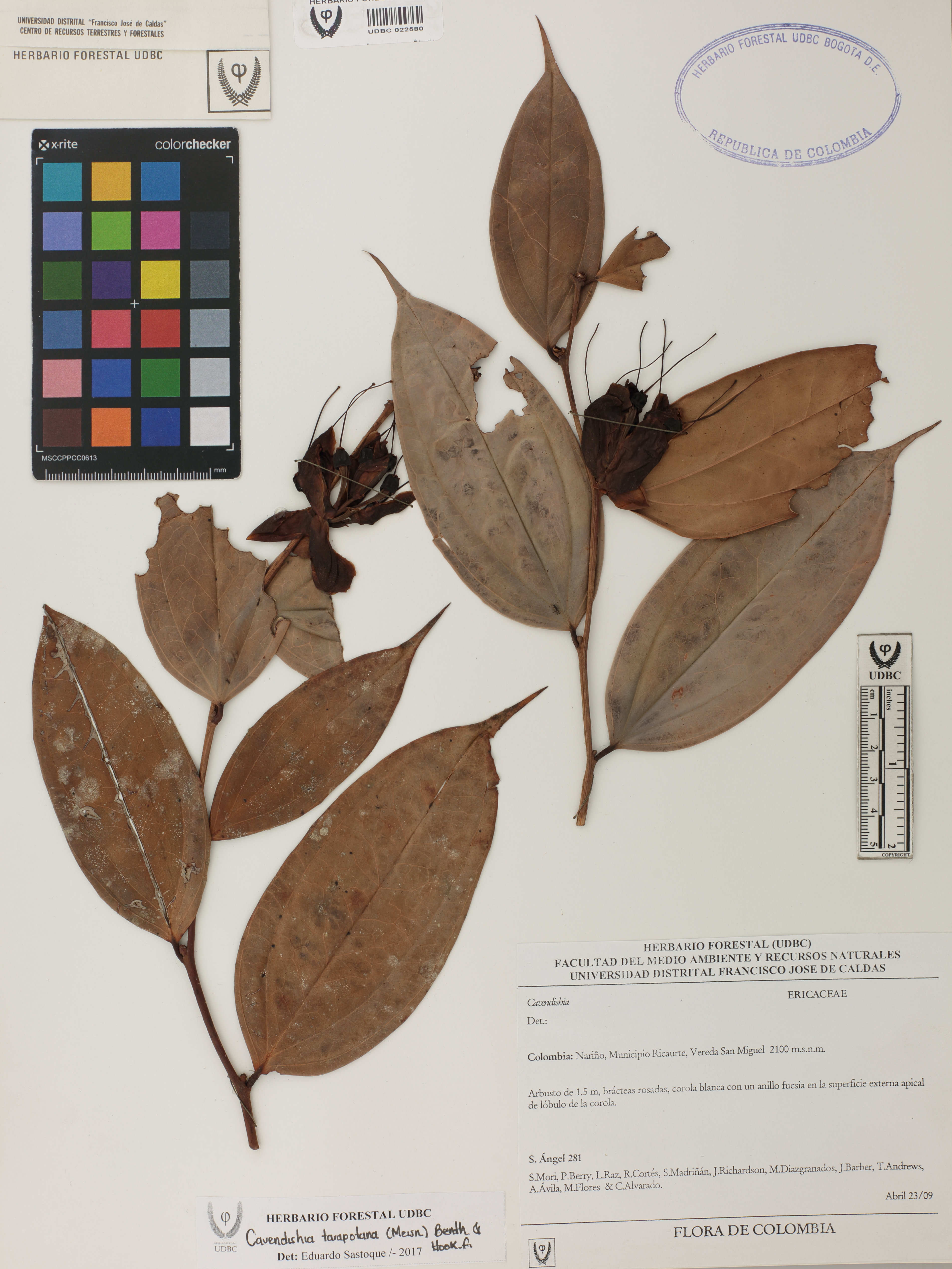 Fotografía del ejemplar Ángel, S. 281, determinado como Cavendishia tarapotana en el año 2017