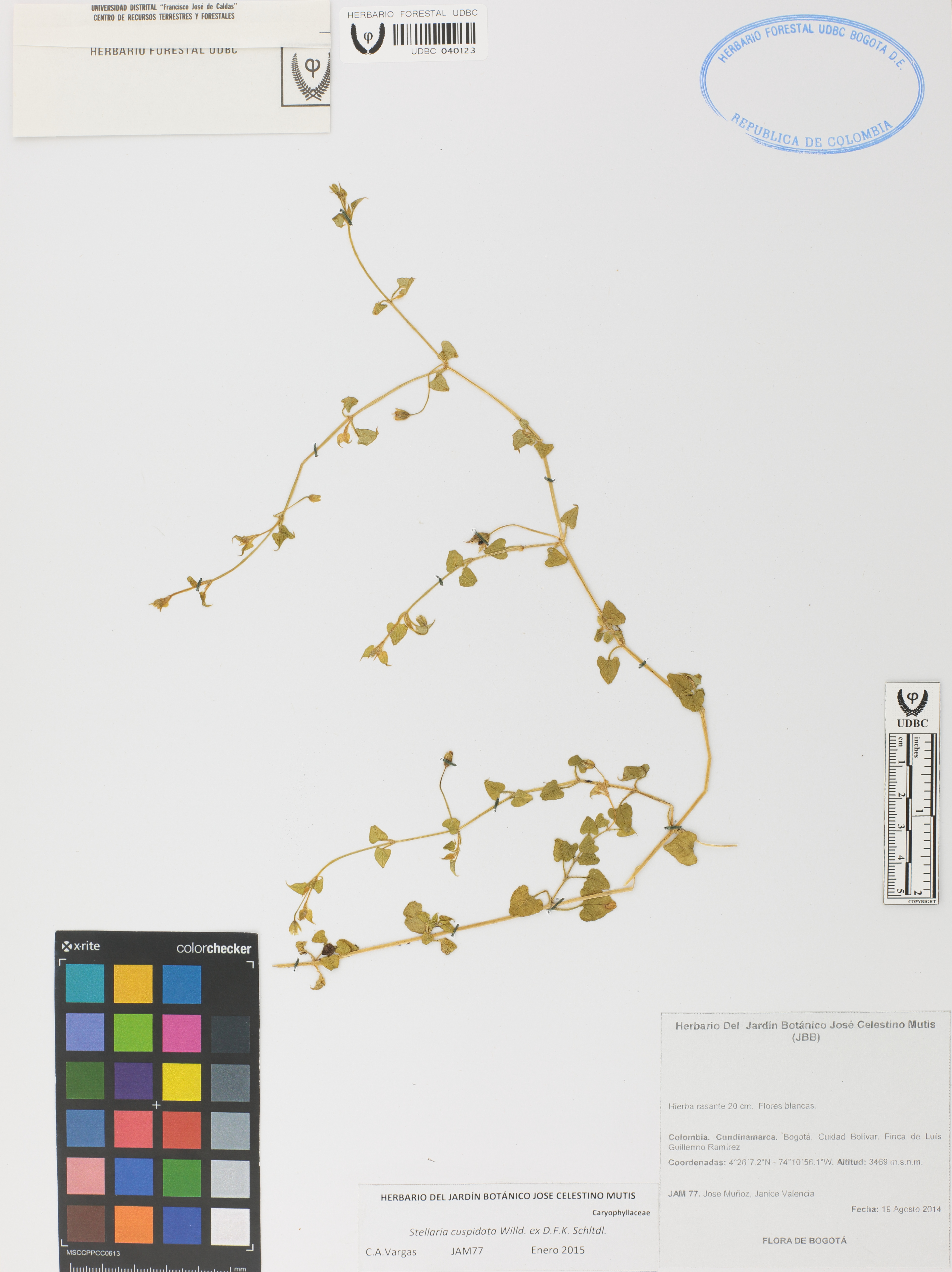 Fotografía del ejemplar Muñoz, J. 77, determinado como Stellaria cuspidata en el año 2015