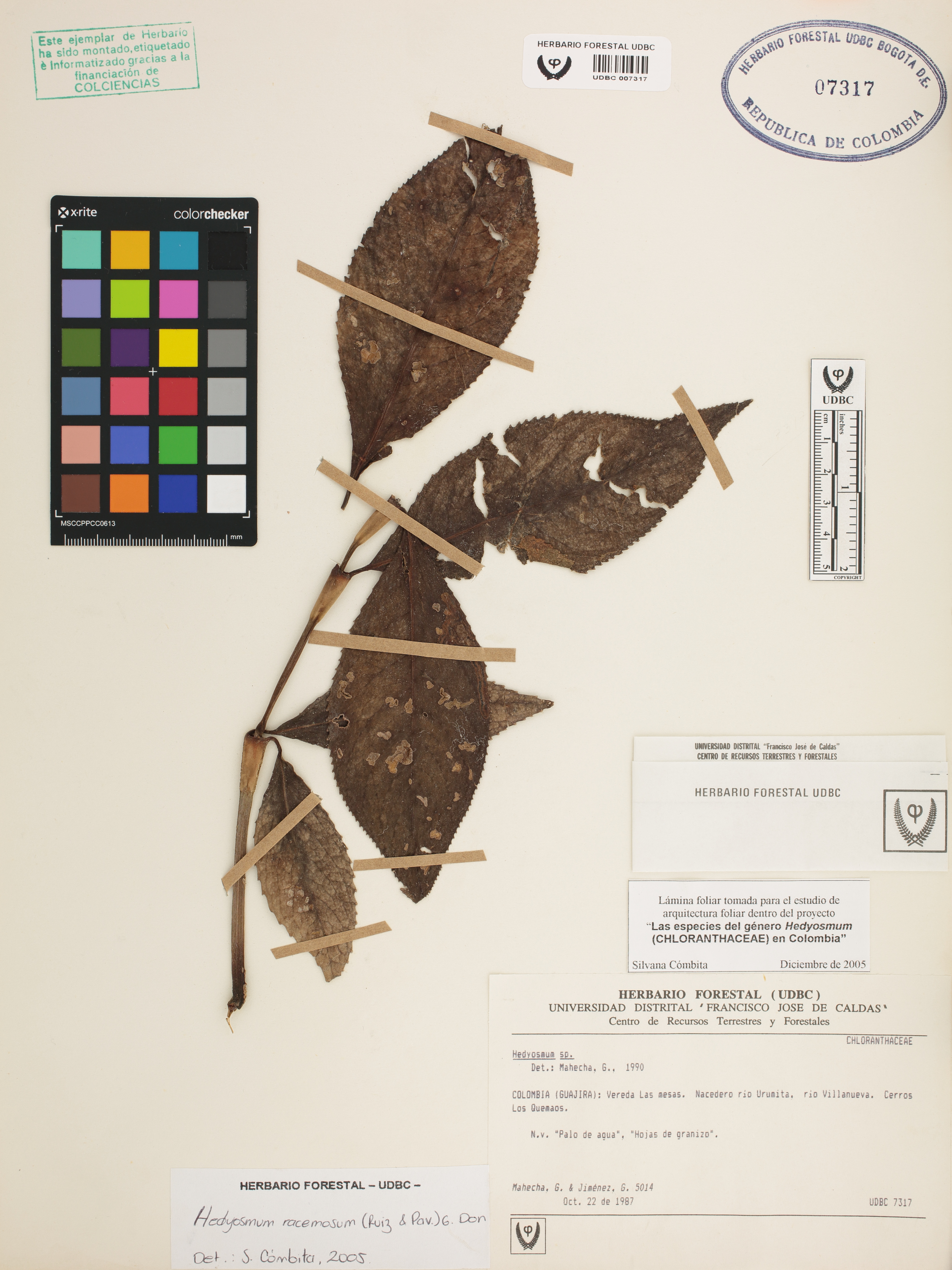 Fotografía del ejemplar Mahecha, G. 5014, determinado como Hedyosmum racemosum en el año 2005