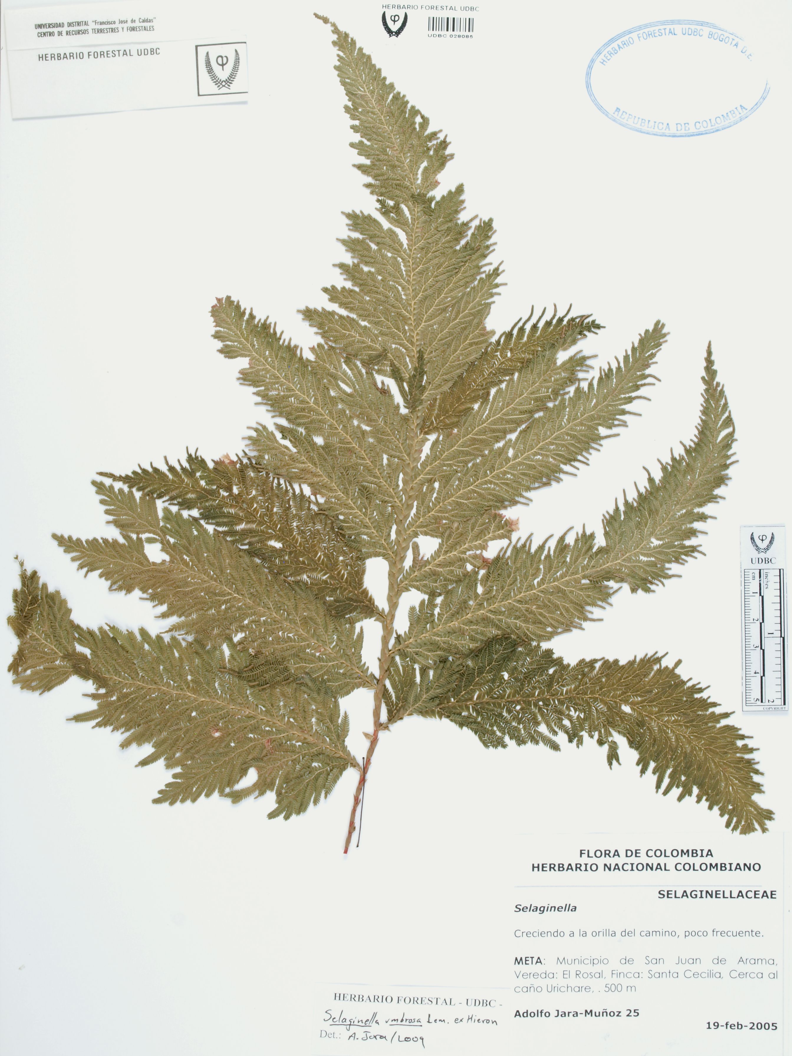 Fotografía del ejemplar Jara-Muñoz, A. 25, determinado como Selaginella umbrosa en el año 2009