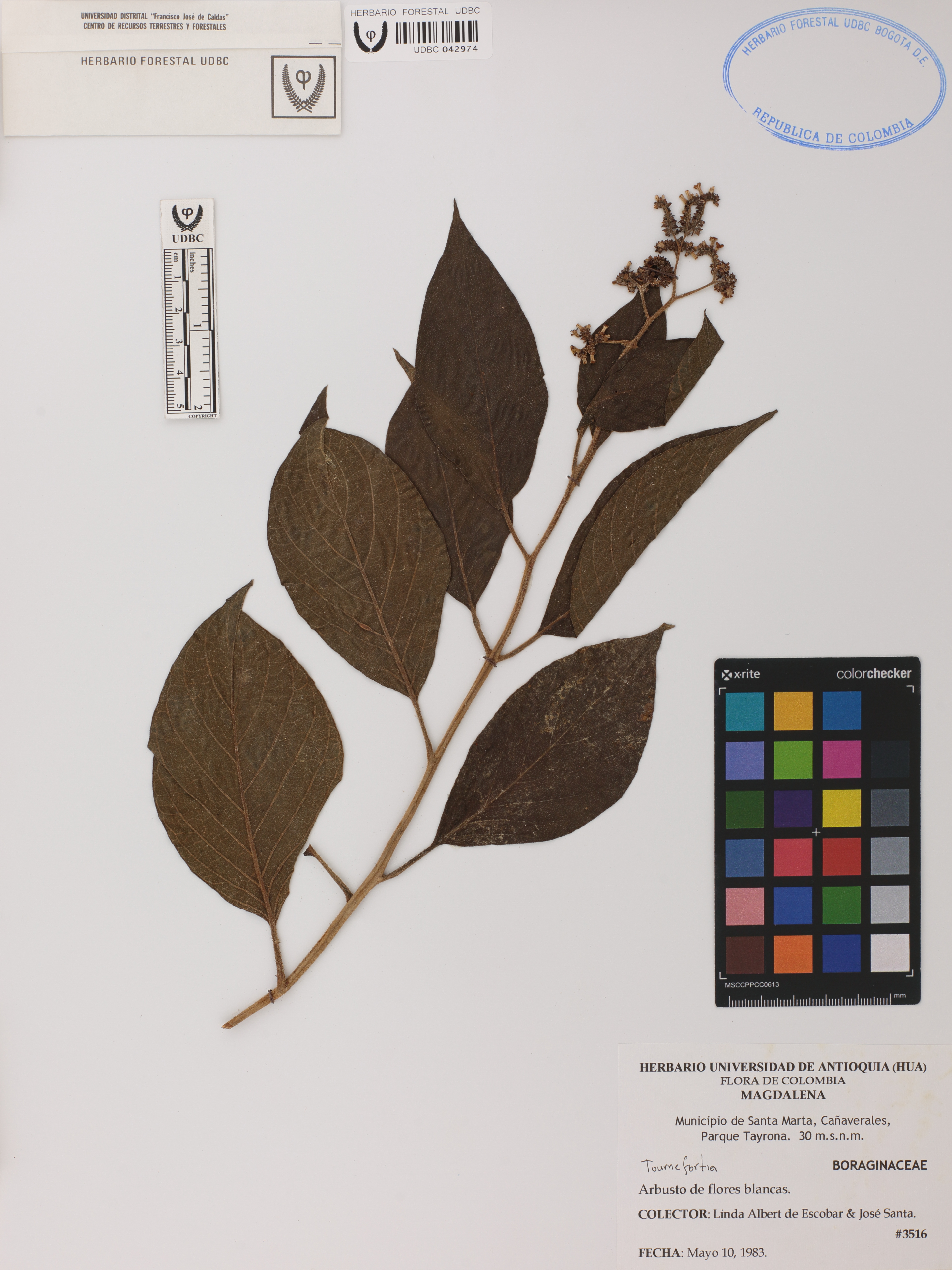 Fotografía del ejemplar Albert de Escobar, L. 3516, determinado como Tournefortia sp.