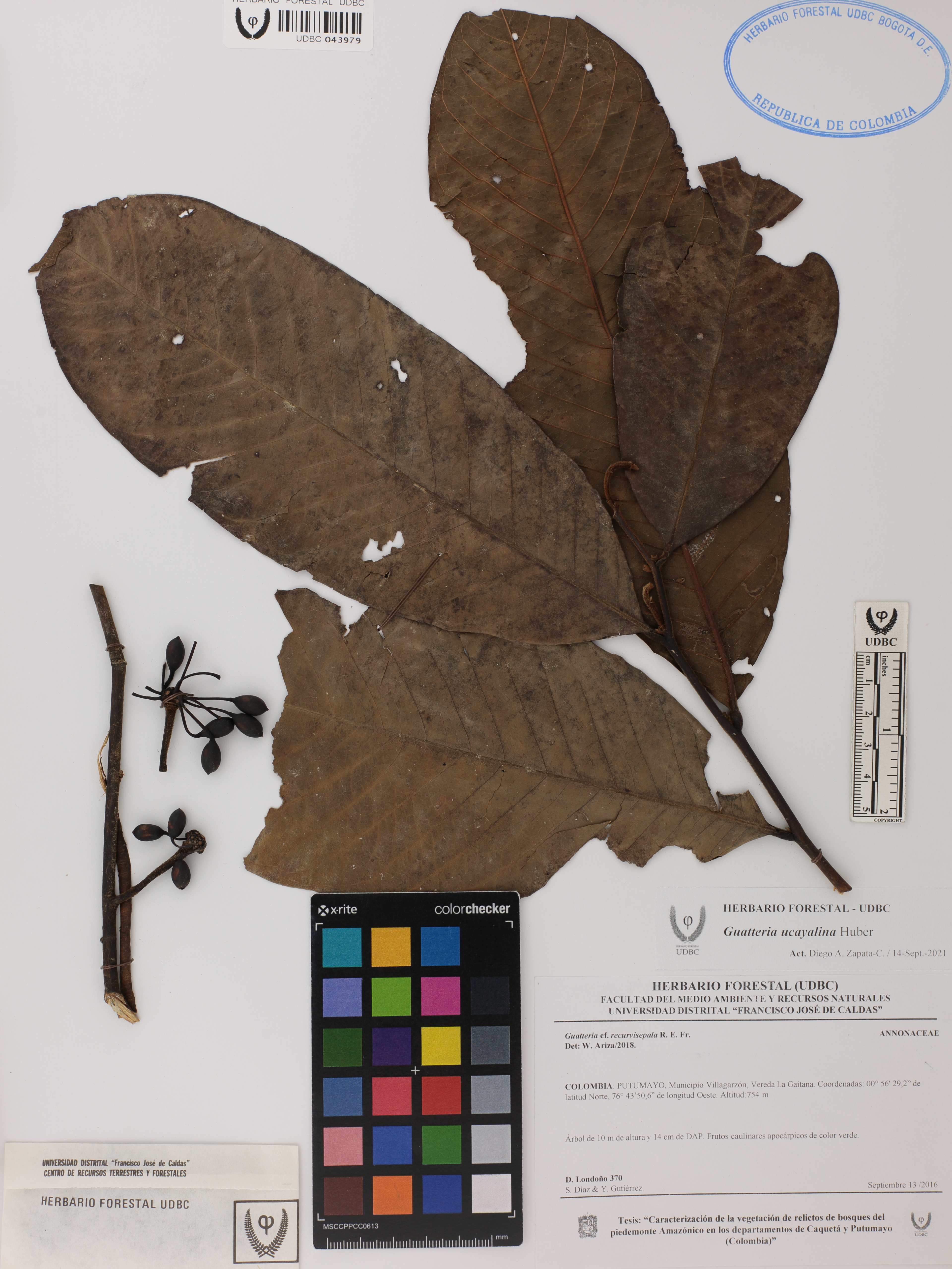 Fotografía del ejemplar Londoño, D. 370, determinado como Guatteria ucayalina en el año 2018