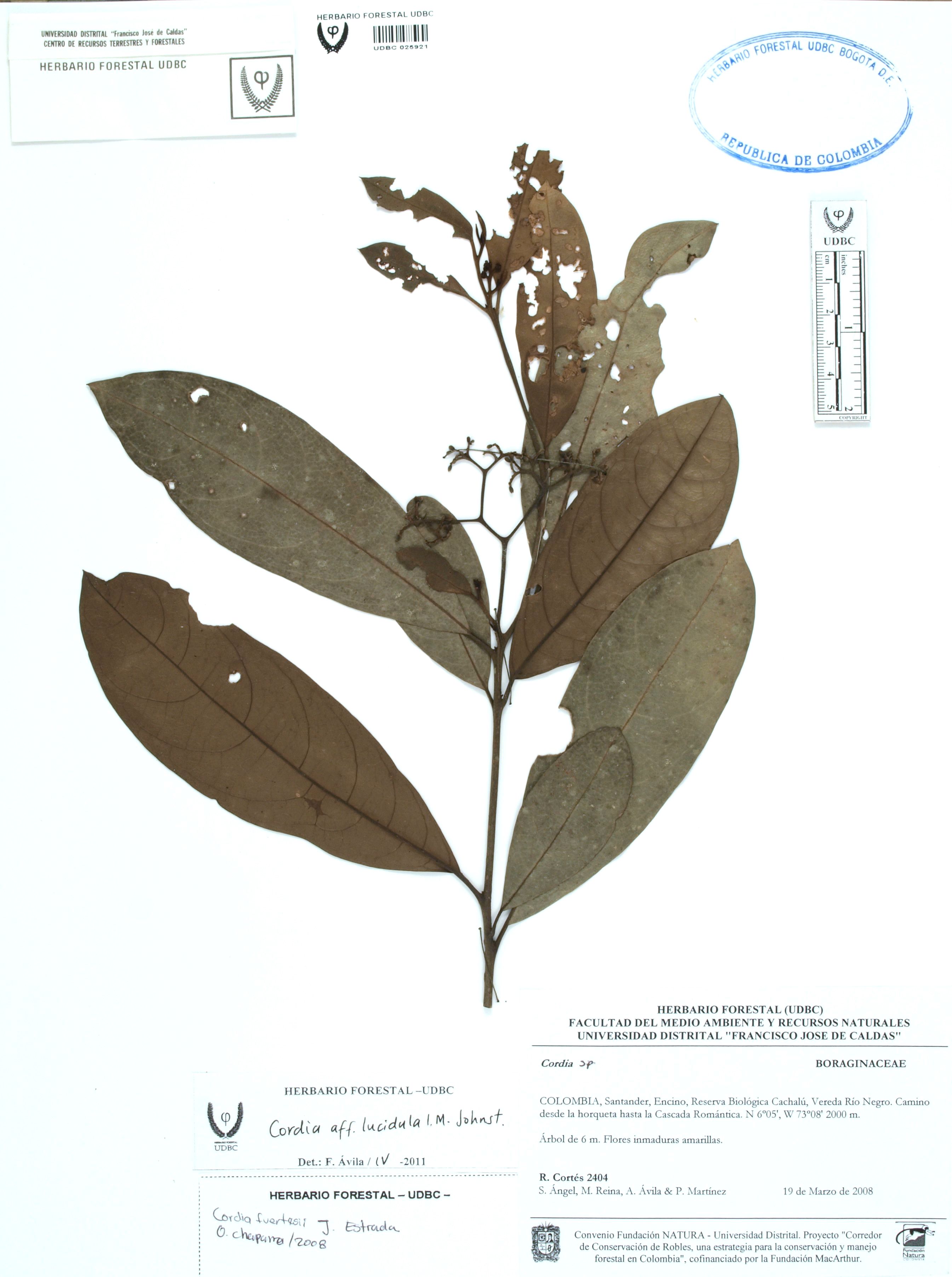 | dc.description | Fotografía del ejemplar Cortés, R. 2404, determinado como Cordia lucidula en el año 2011 | |