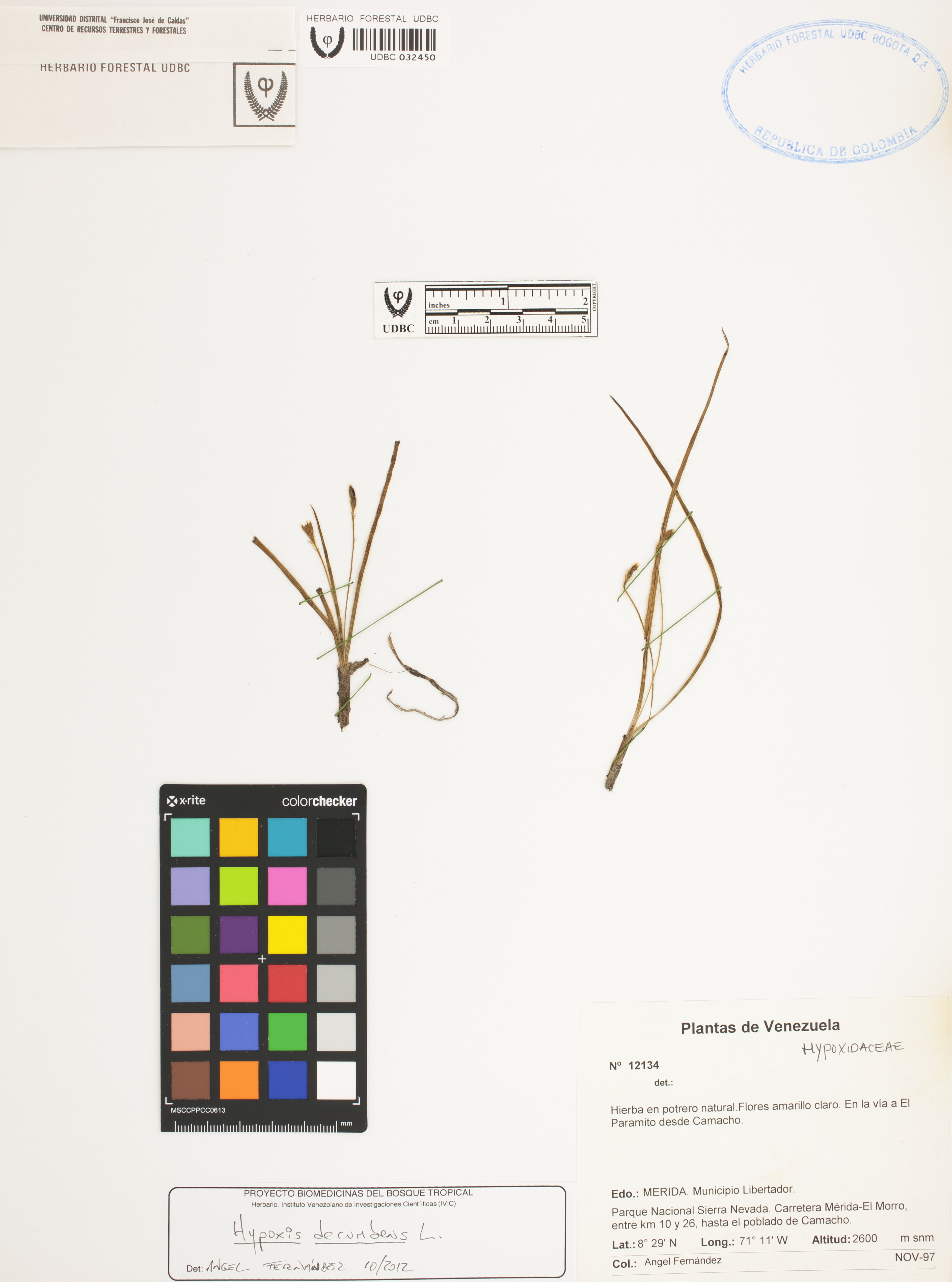 Fotografía del ejemplar Fernández, A. 12134, determinado como Hypoxis decumbens en el año 2012