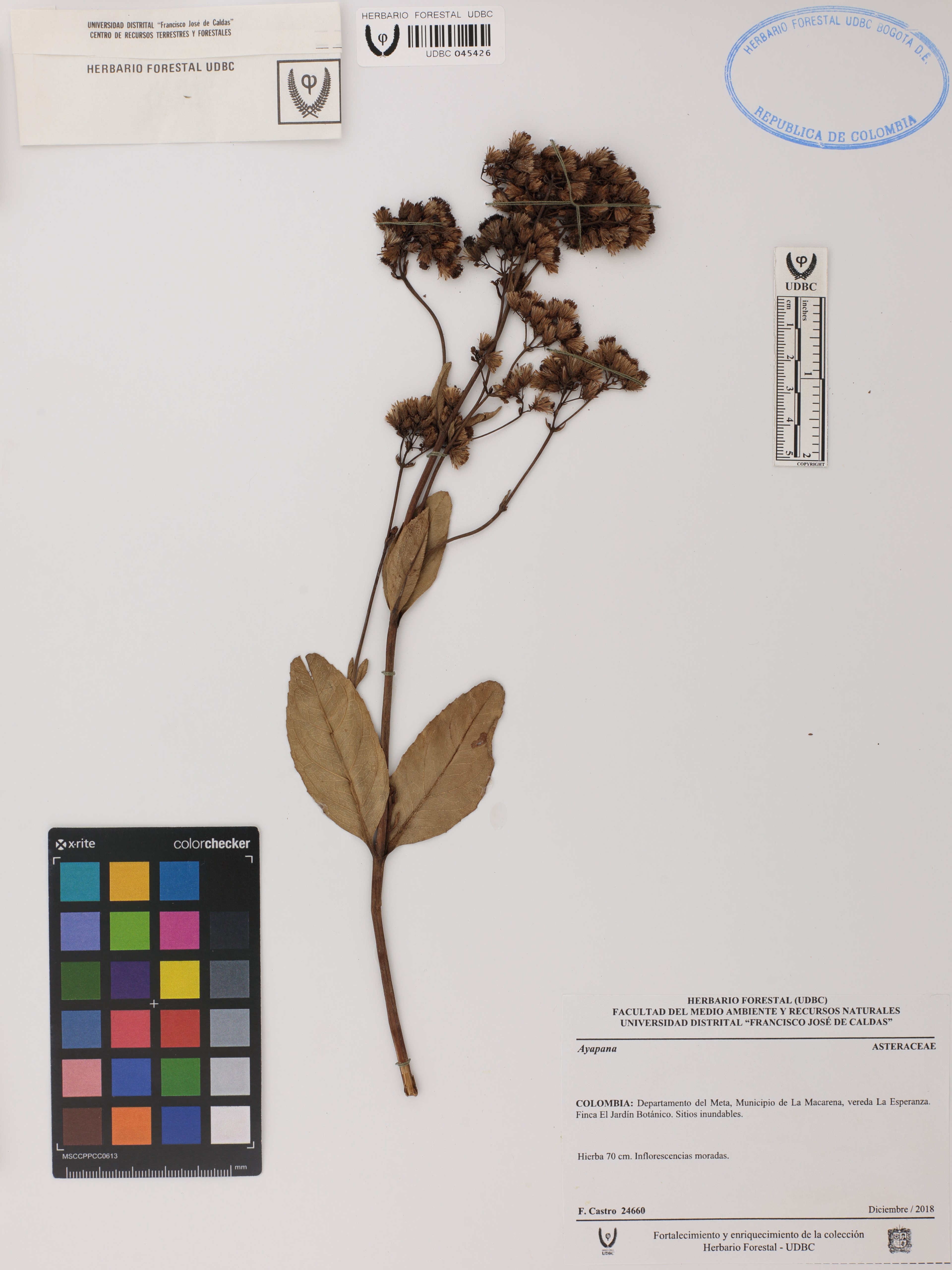 | dc.description | Fotografía del ejemplar Castro, F. 24660, determinado como Ayapana sp. | |