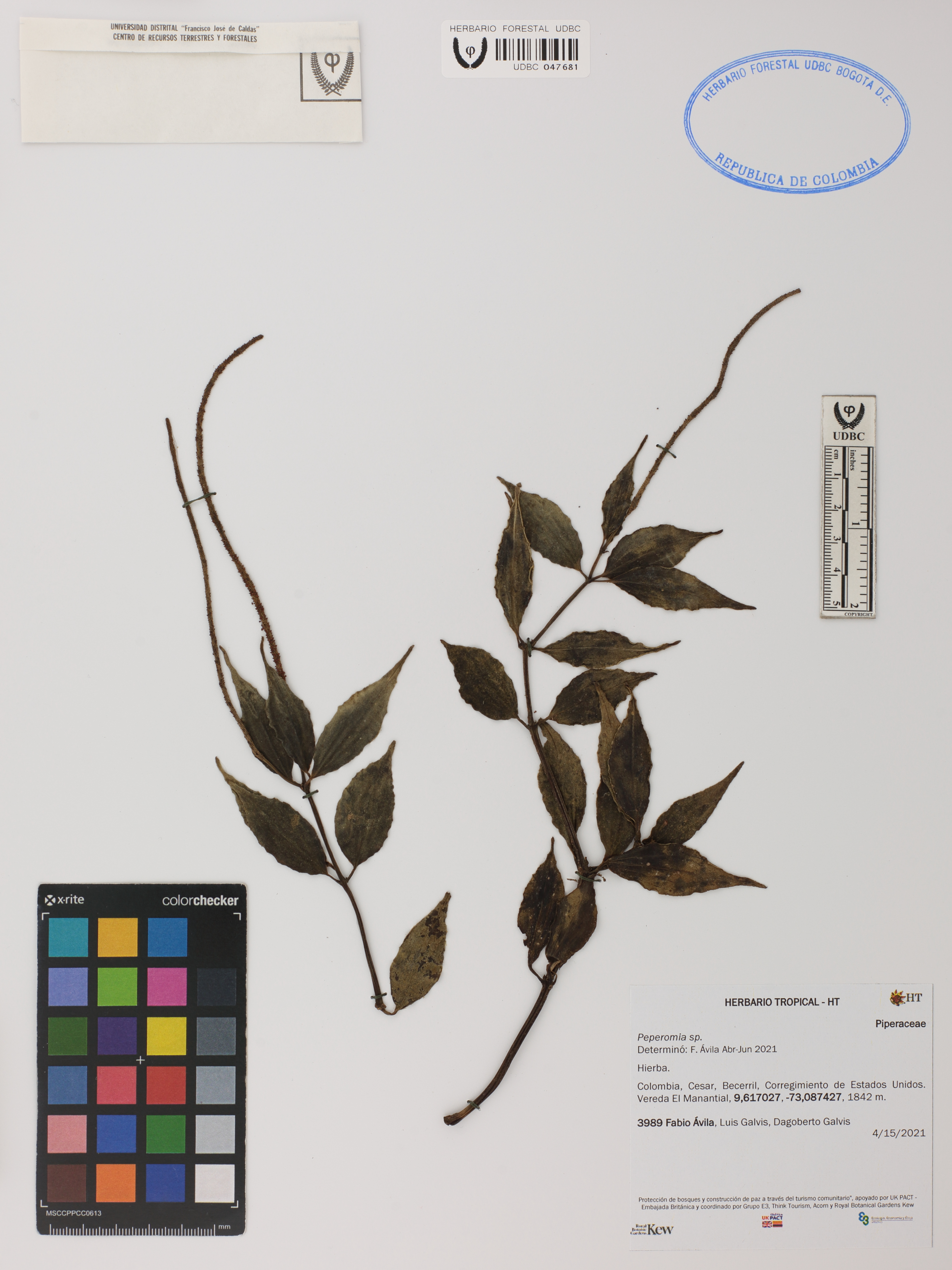 | dc.description | Fotografía del ejemplar Ávila, F. 3989, determinado como Peperomia sp. en el año 2021 | |