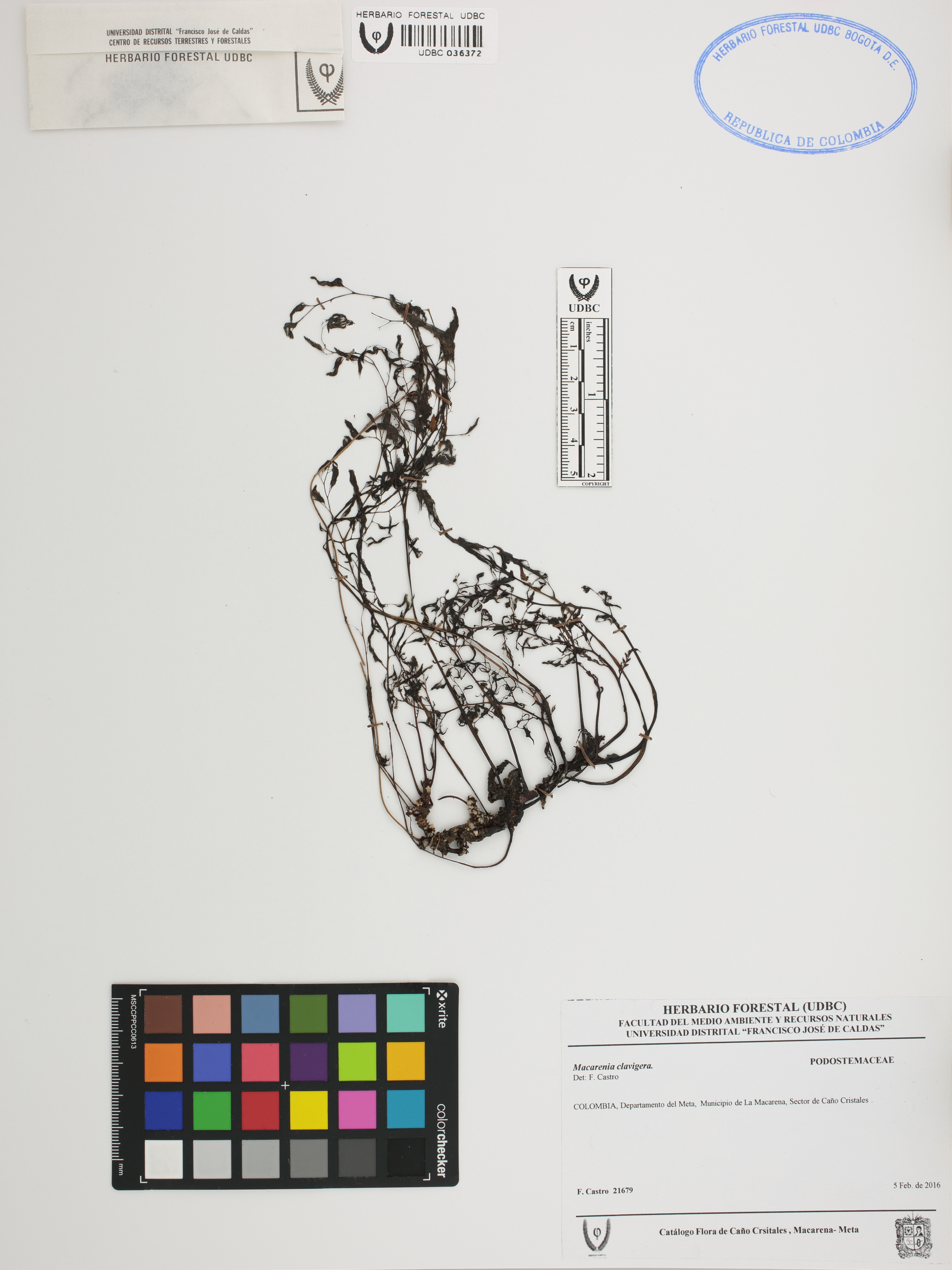 Fotografía del ejemplar Castro, F. 21679, determinado como Macarenia clavigera