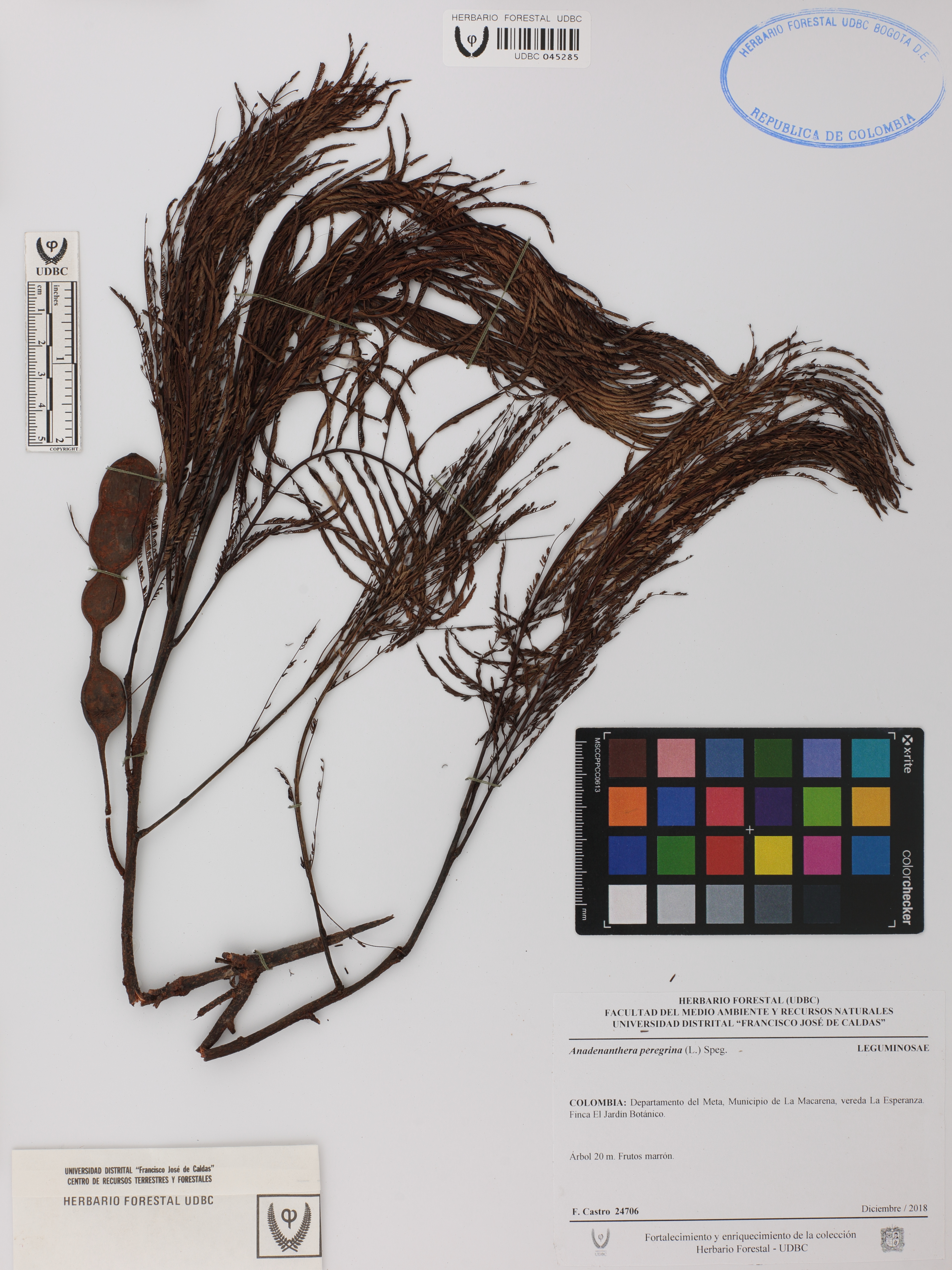 | dc.description | Fotografía del ejemplar Castro, F. 24706, determinado como Anadenanthera peregrina en el año 2018 | |