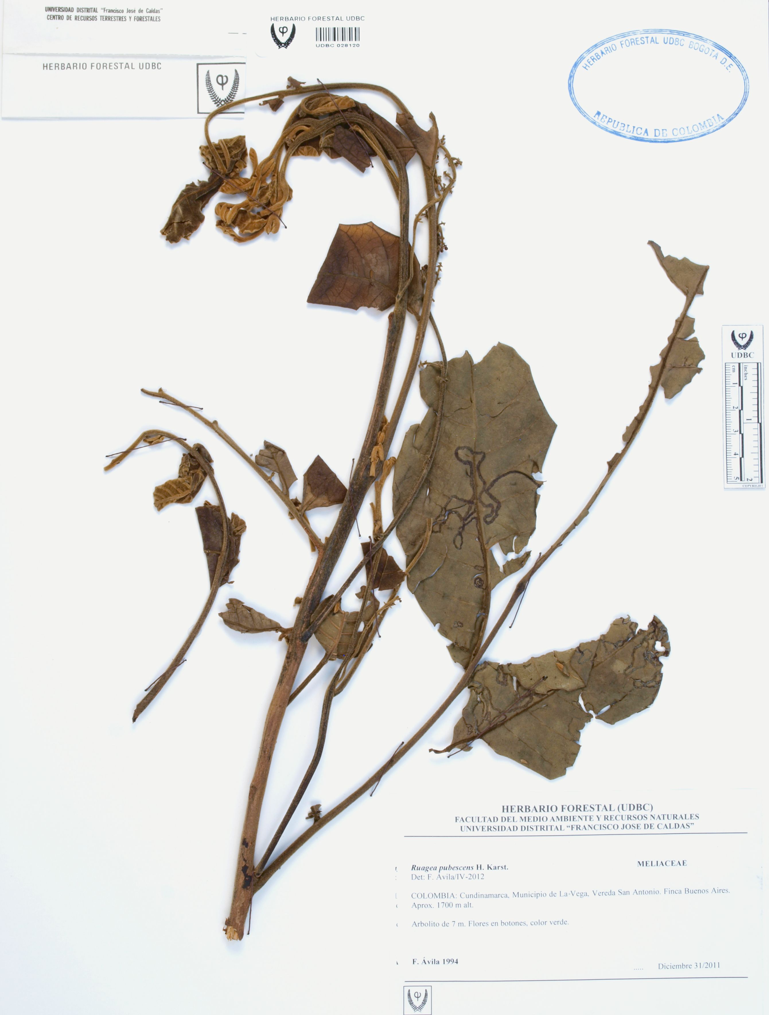 | dc.description | Fotografía del ejemplar Ávila, F. 1994, determinado como Ruagea pubescens en el año 2012 | |