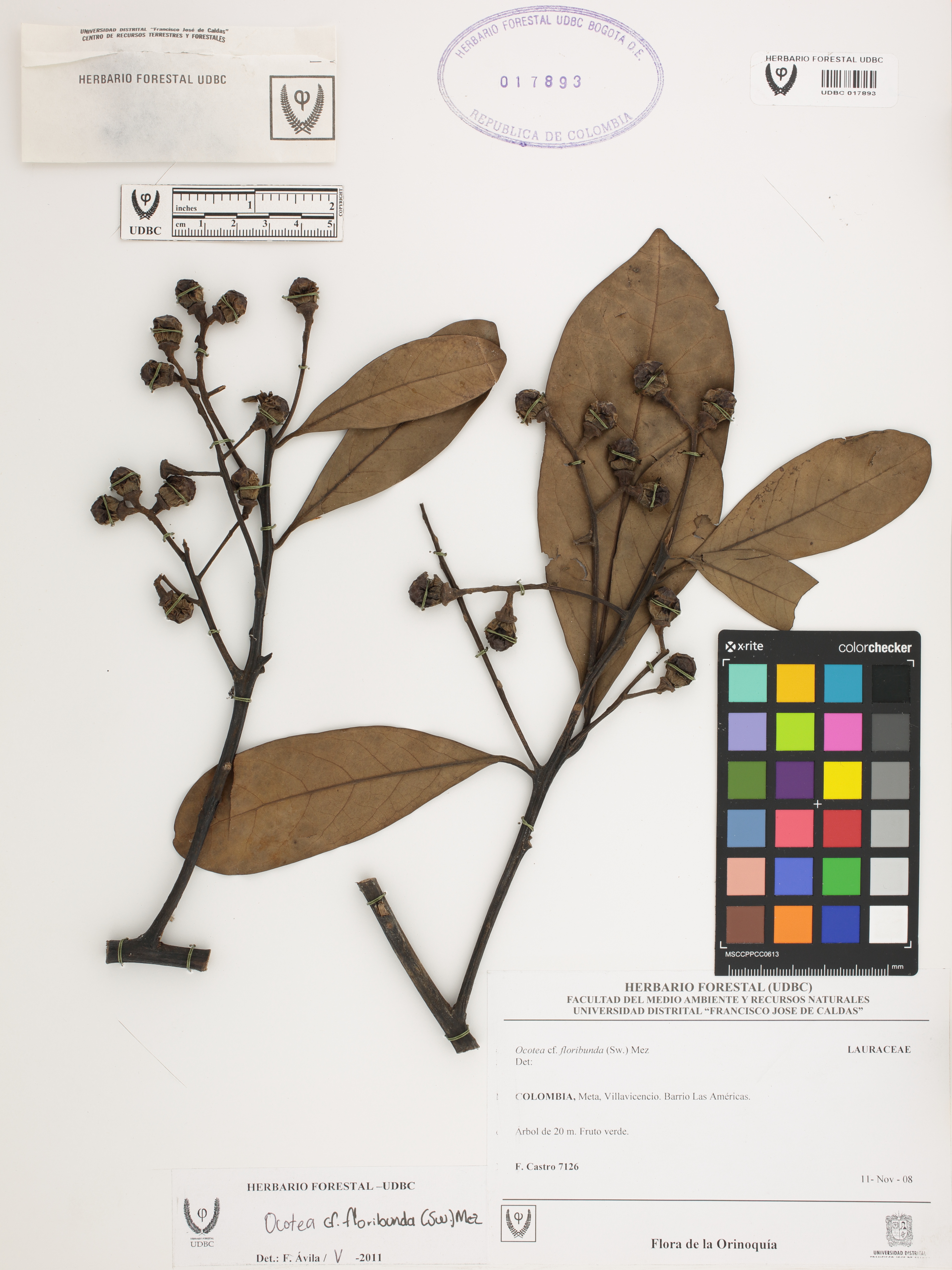 Fotografía del ejemplar Castro, F. 7126, determinado como Ocotea floribunda en el año 2011