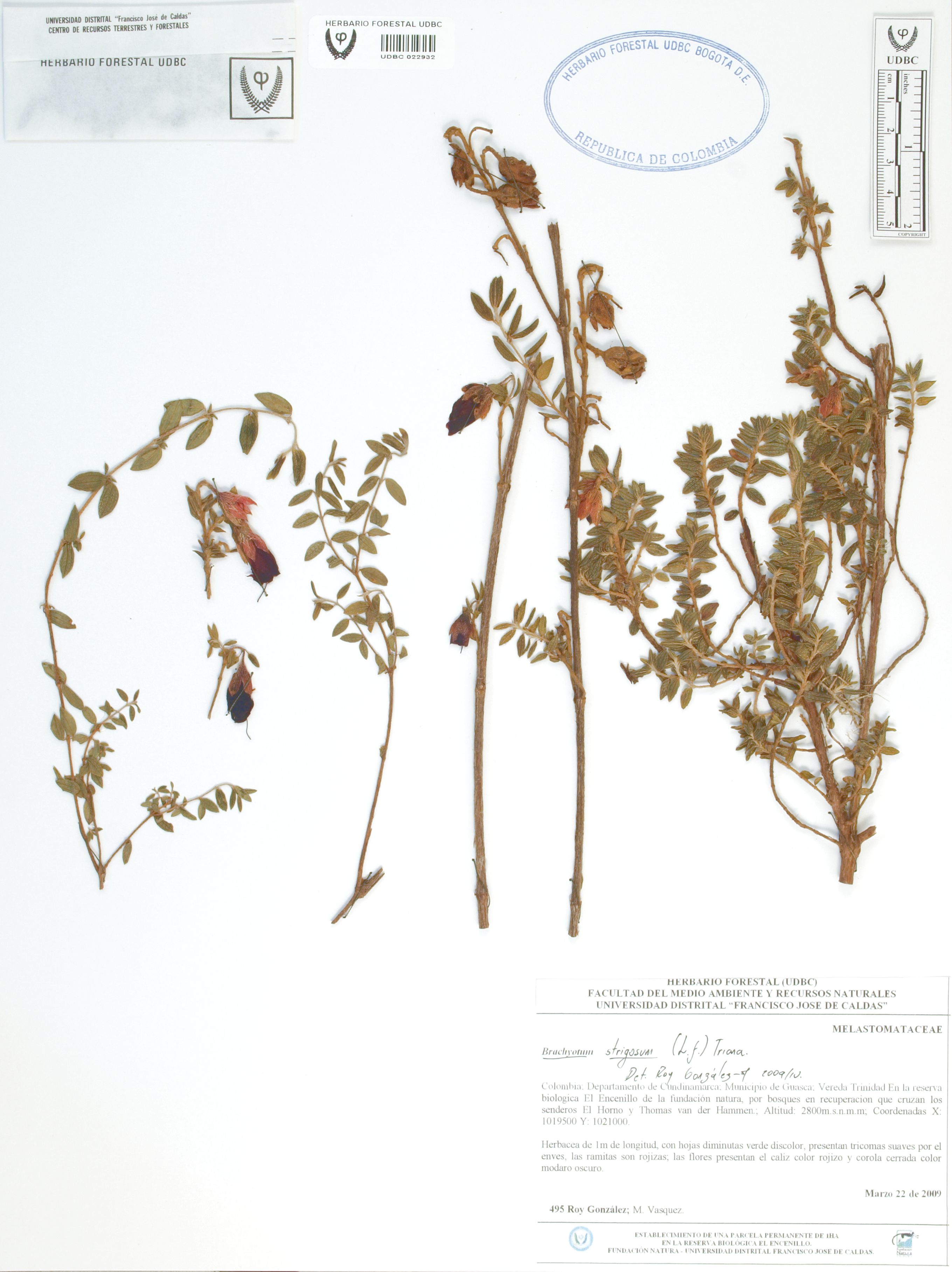 Fotografía del ejemplar González, R. 495, determinado como Brachyotum strigosum en el año 2009