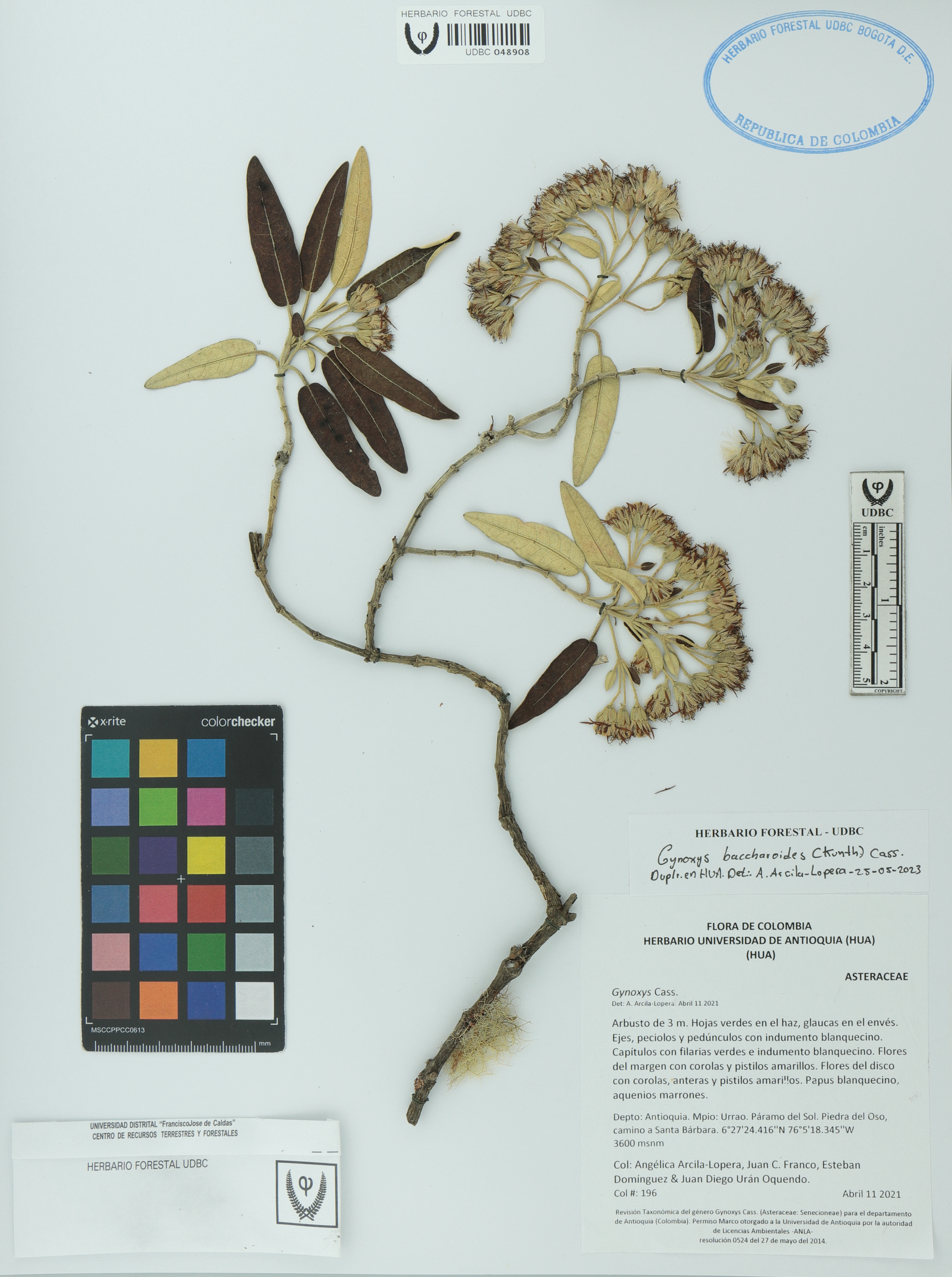 | dc.description | Fotografía del ejemplar Arcila-L., A. 196, determinado como Gynoxys baccharoides en el año 2023 | |