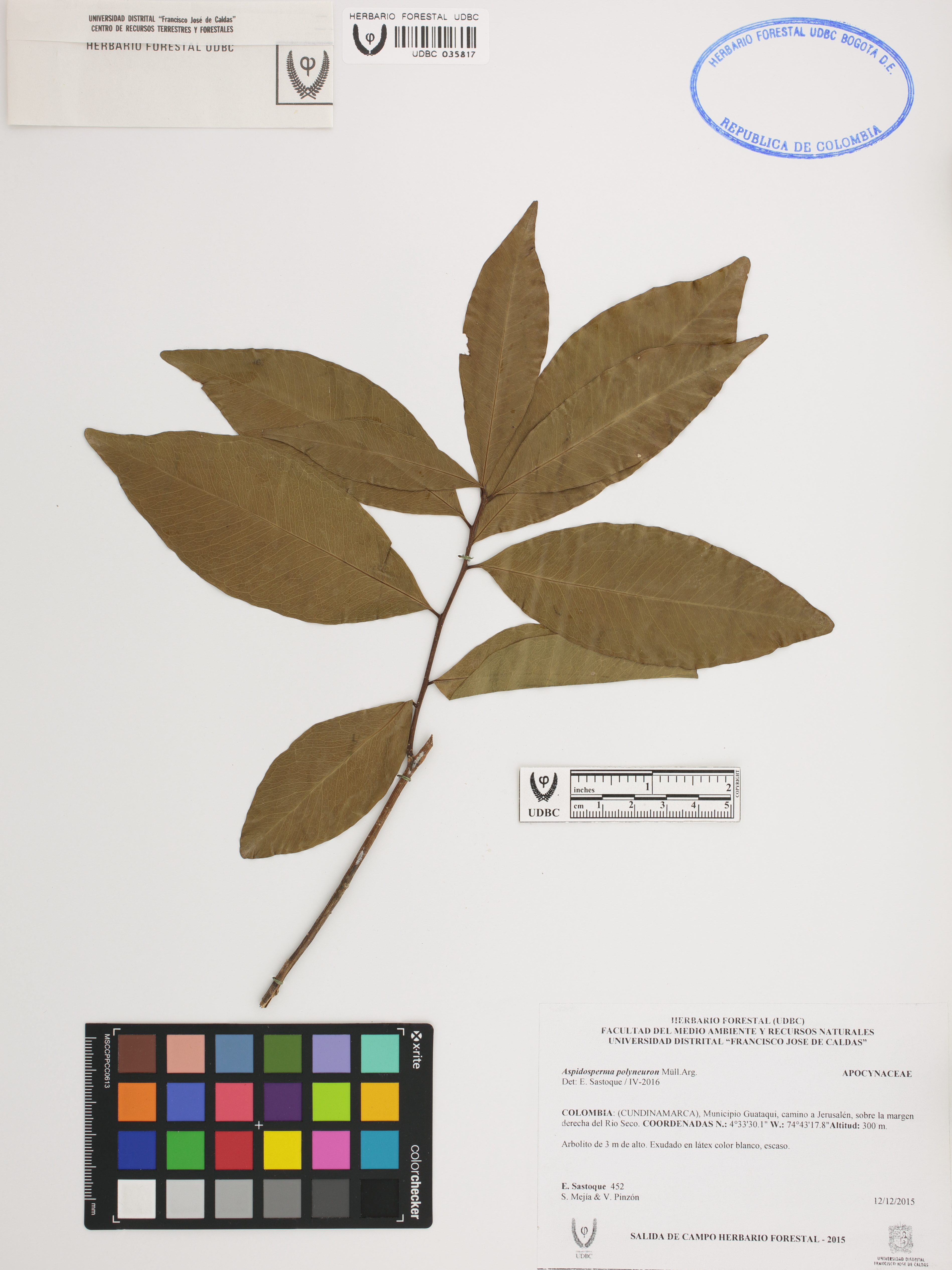 | dc.description | Fotografía del ejemplar Sastoque, E. 452, determinado como Aspidosperma polyneuron en el año 2016 | |