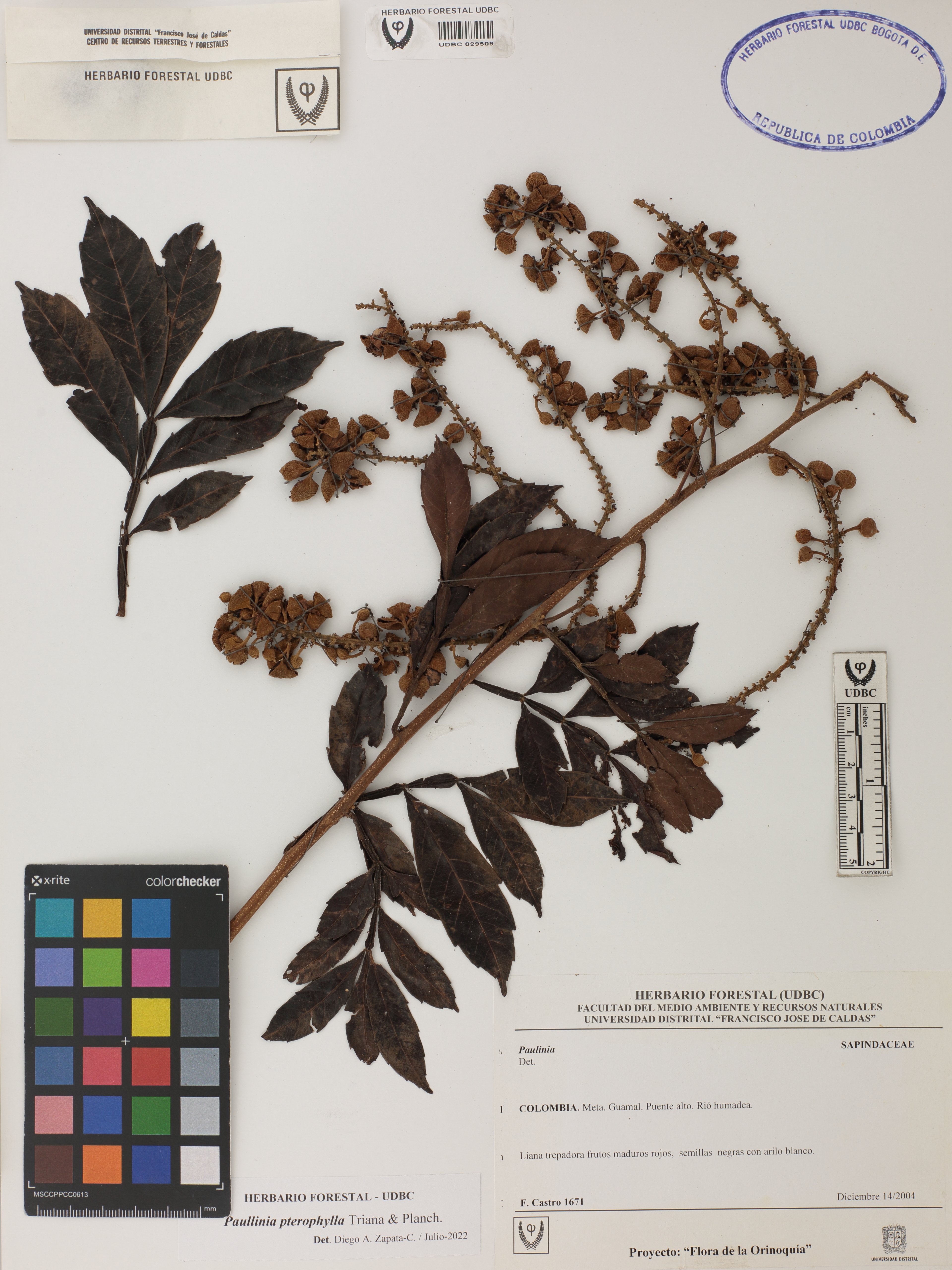 Fotografía del ejemplar Castro, F. 1671, determinado como Paullinia pterophylla en el año 2022