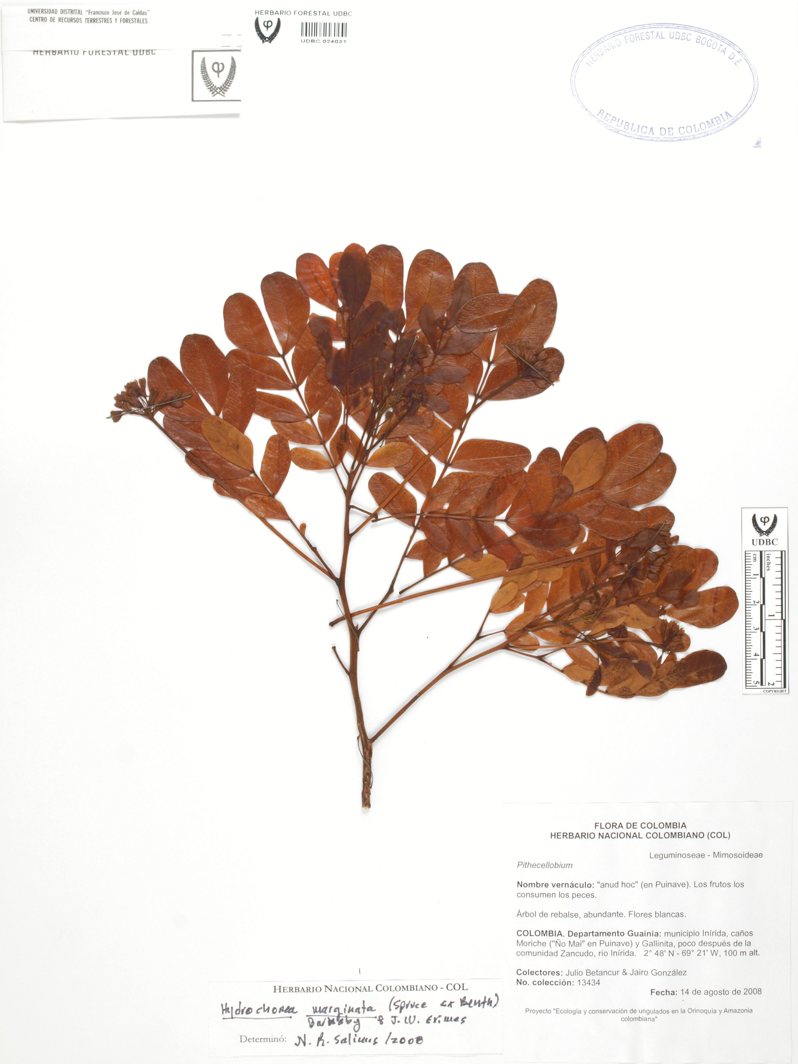 | dc.description | Fotografía del ejemplar Betancur, J. 13434, determinado como Hydrochorea marginata en el año 2008 | |
