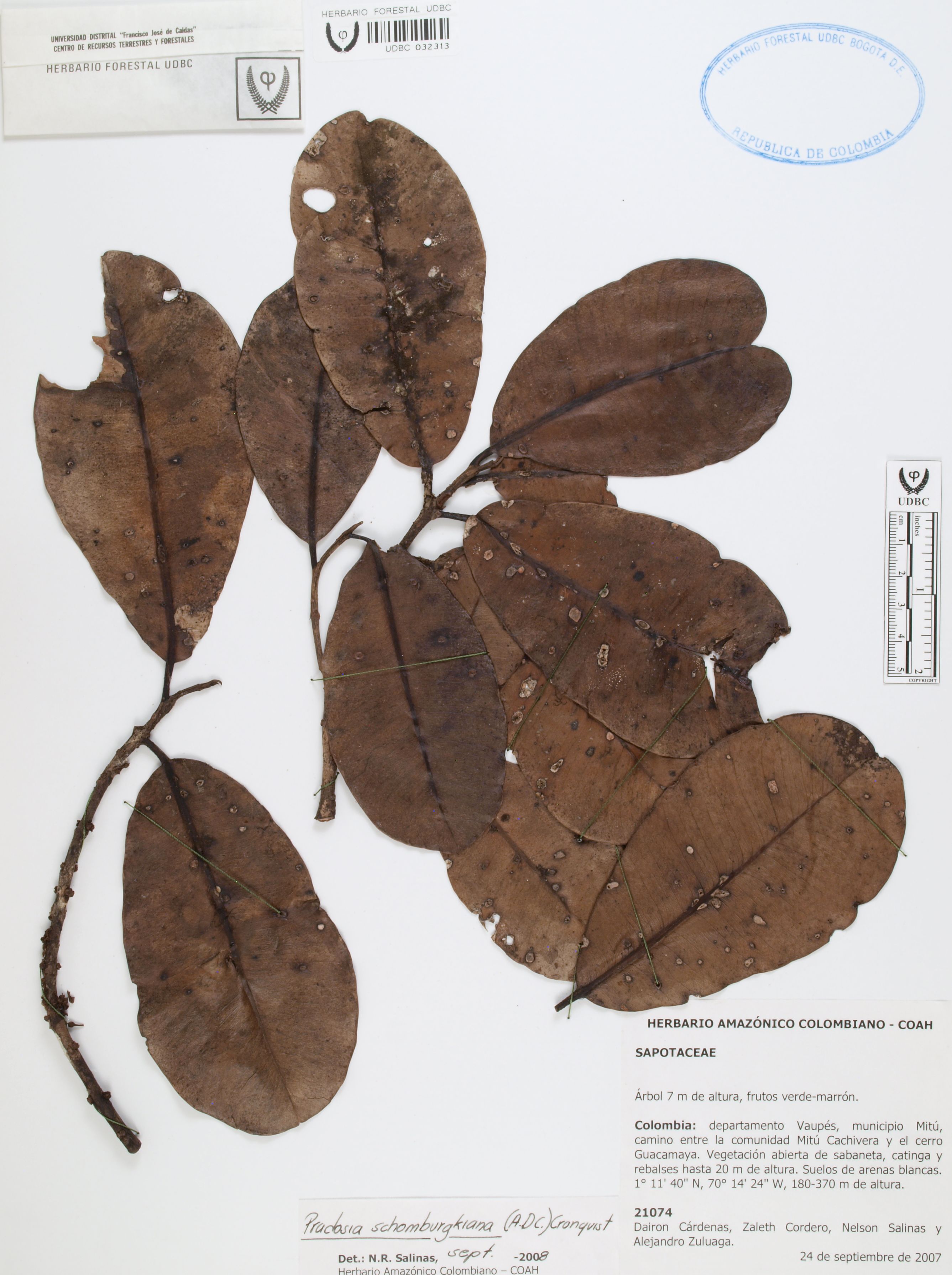 | dc.description | Fotografía del ejemplar Cárdenas, D. 21074, determinado como Pradosia schomburgkiana en el año 2008 | |